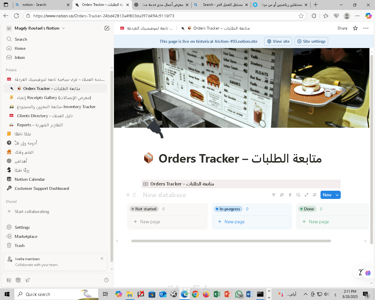 ملف اكسل تفاعلي لمتابعة المهام أو المعاملات والطلبات Excel