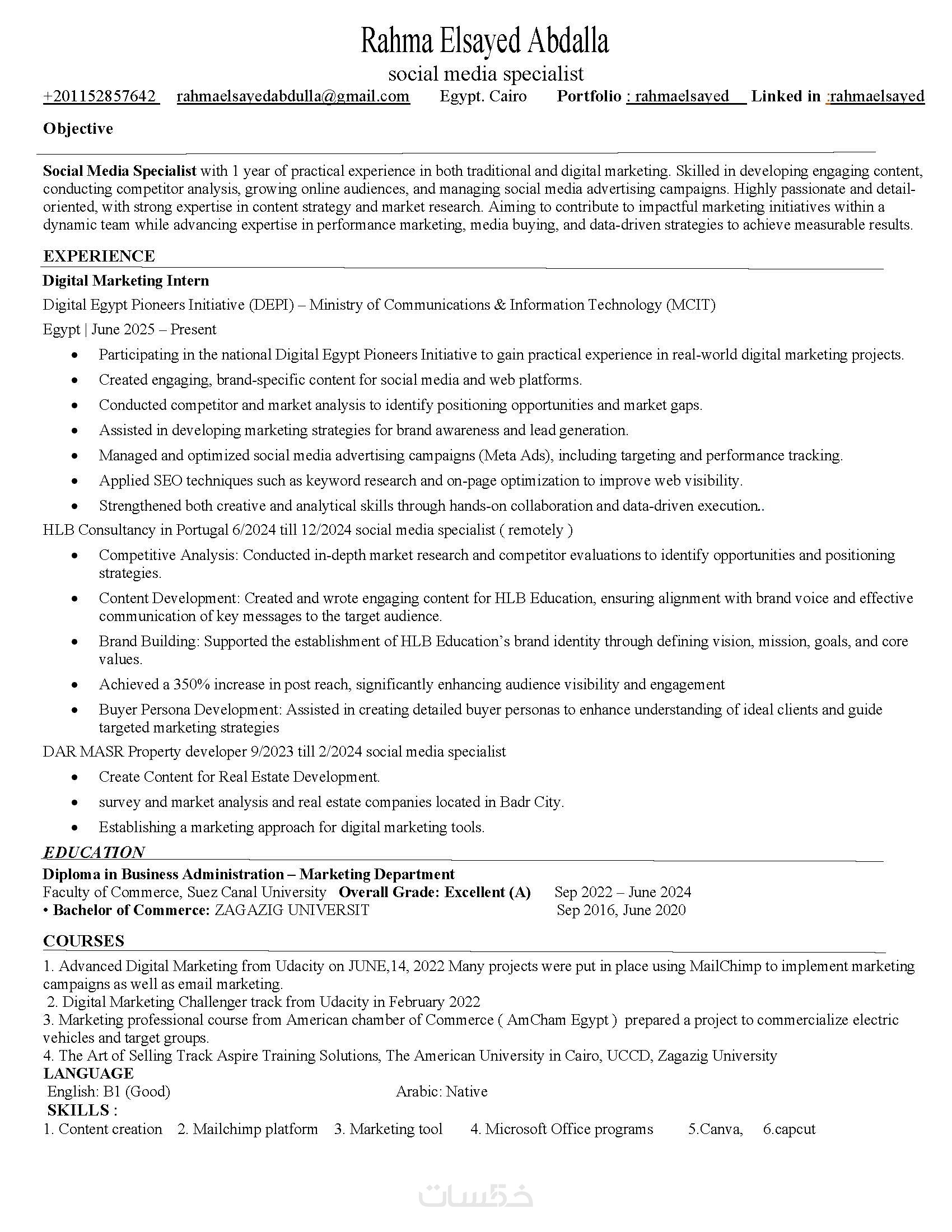 خدمة كتابة سيرة ذاتية متميزة