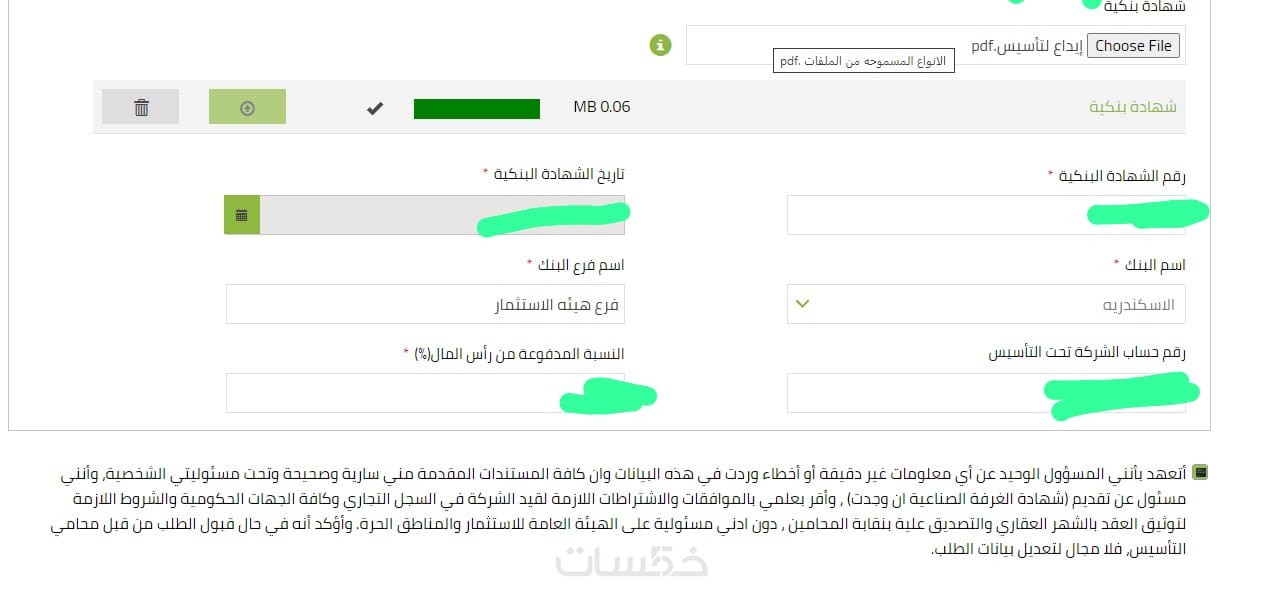 ادخال بيانات خاصه بـتأسيس شركات فى هئيه الاستثمار