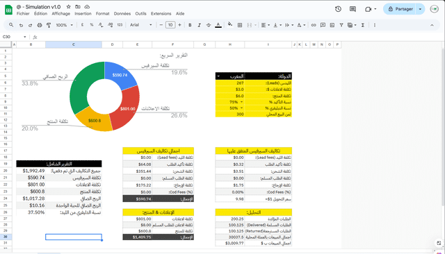 إعداد محاكاة لأي منتج خاص بالتجارة الإلكترونية ملف إيكسل