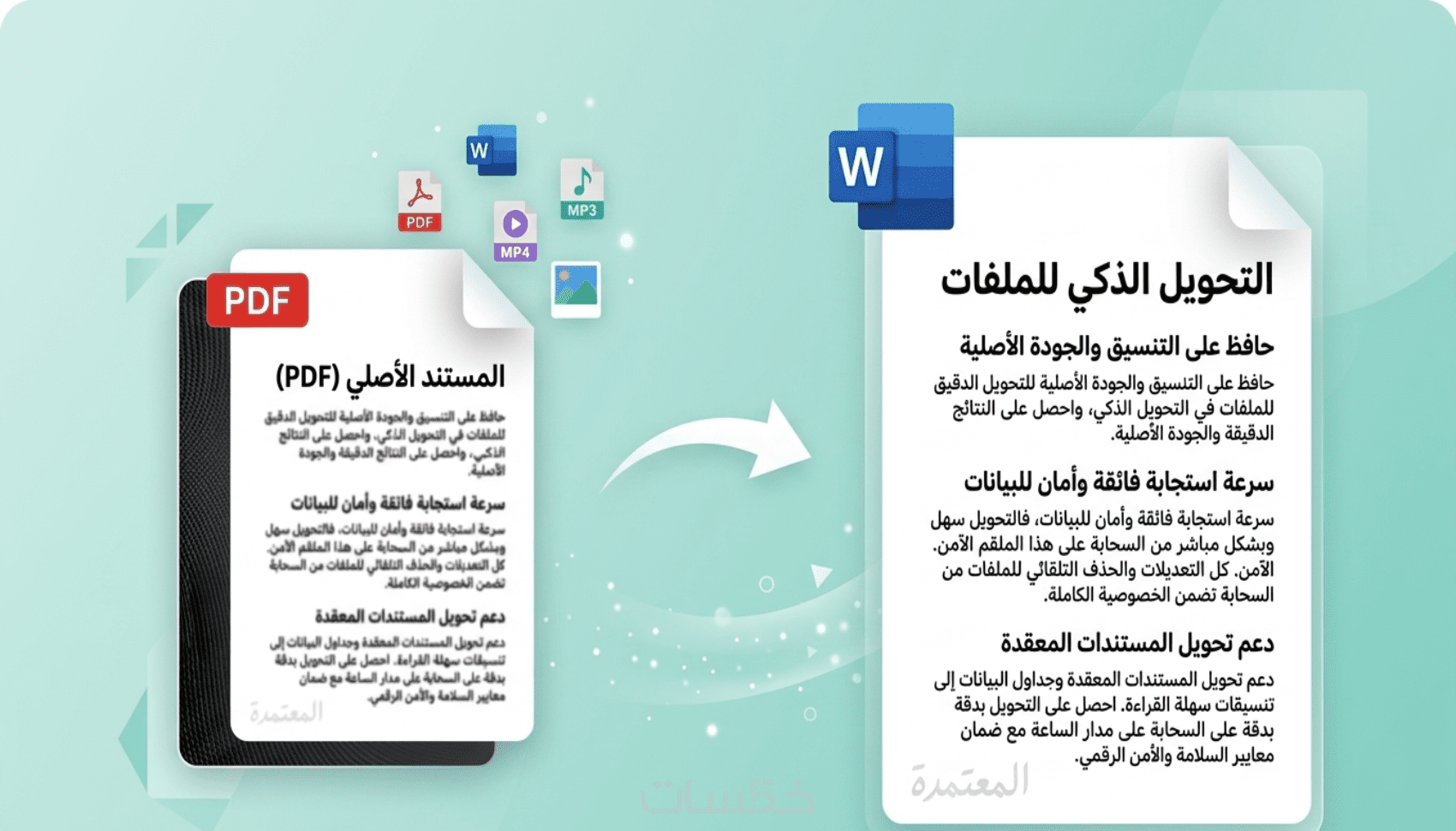 تحويل الملفات بين الصيغ Word، PDF، JPG، Excel بدقة جيدة
