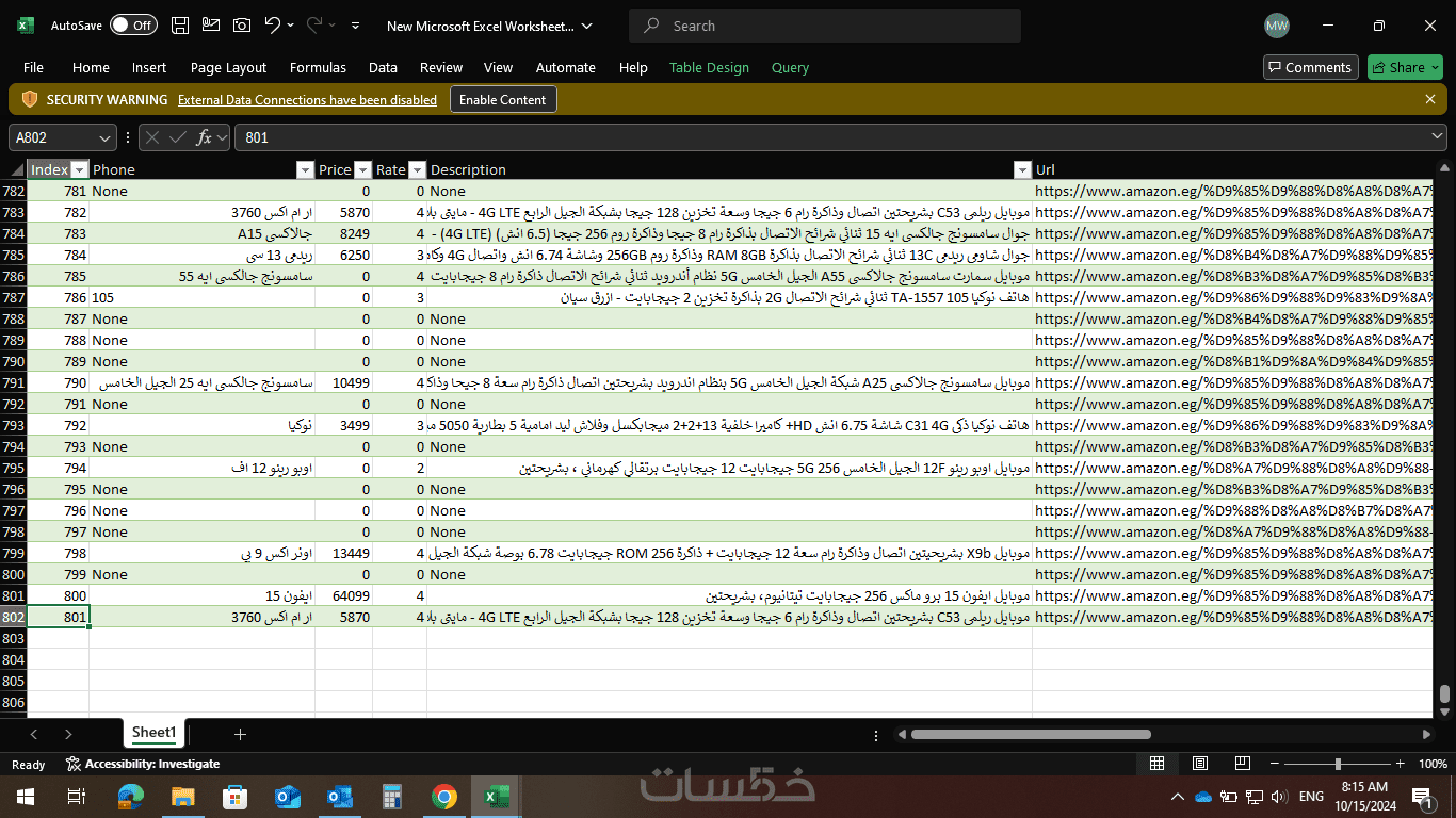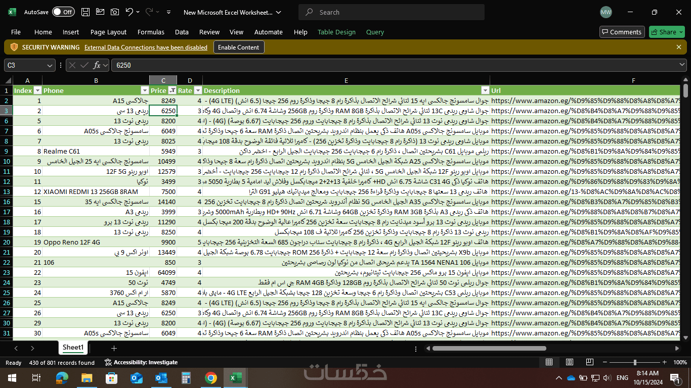 ادخال بيانات ورسوم بيانية اكسيل