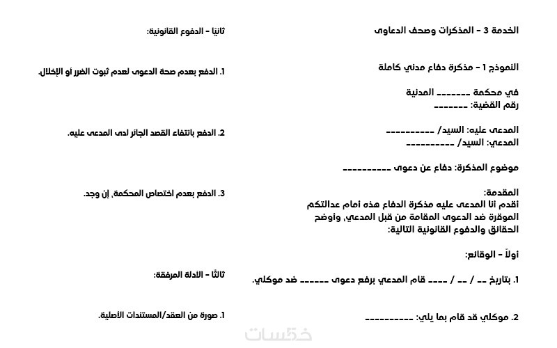 خدمة مذكرات وصحف دعاوى صياغة مذكرة دفاع أو صحيفة دعوى
