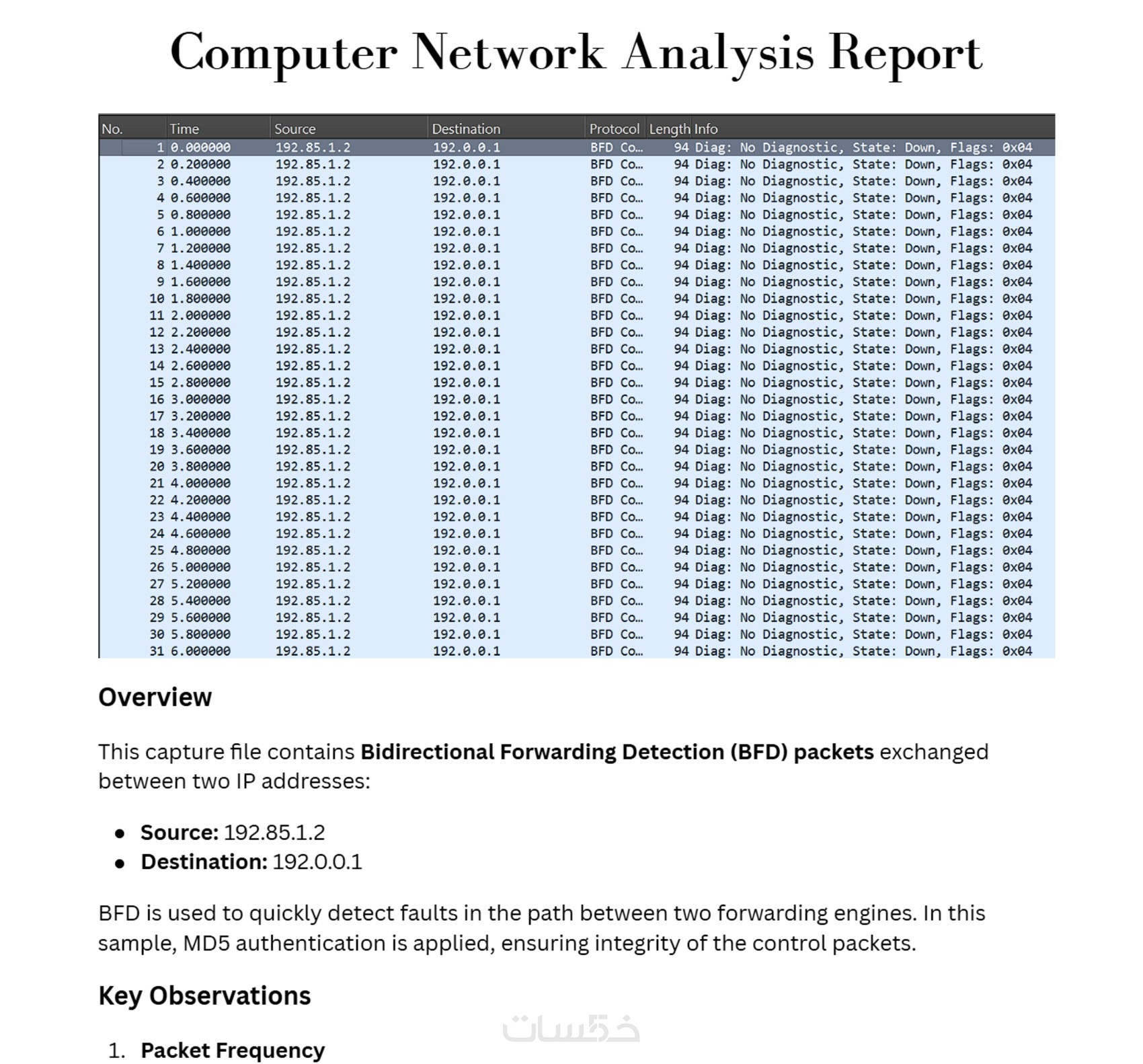 تقرير تحليل شبكات متكامل لمراقبة الأداء و النتائج التقنية
