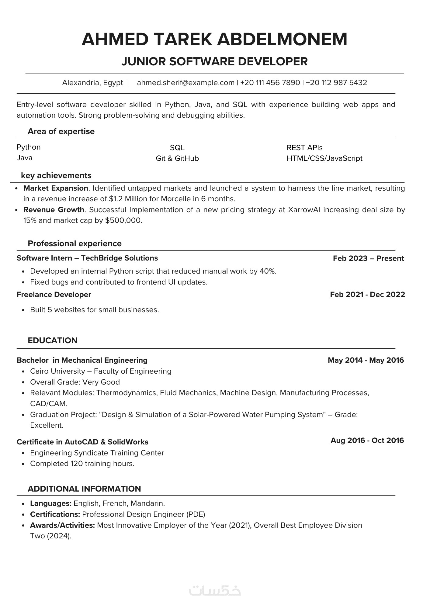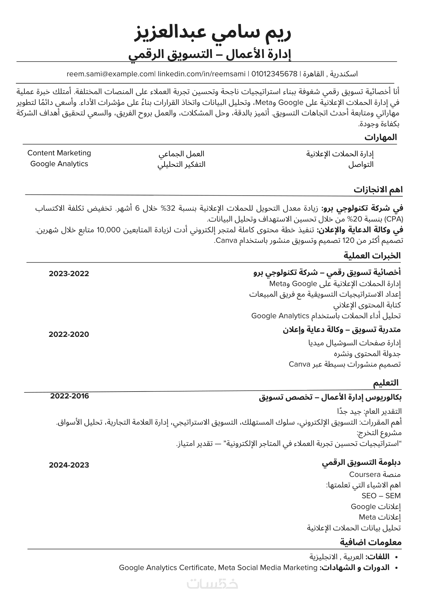 سيرة ذاتية متوافقة مع نظام ال ATS