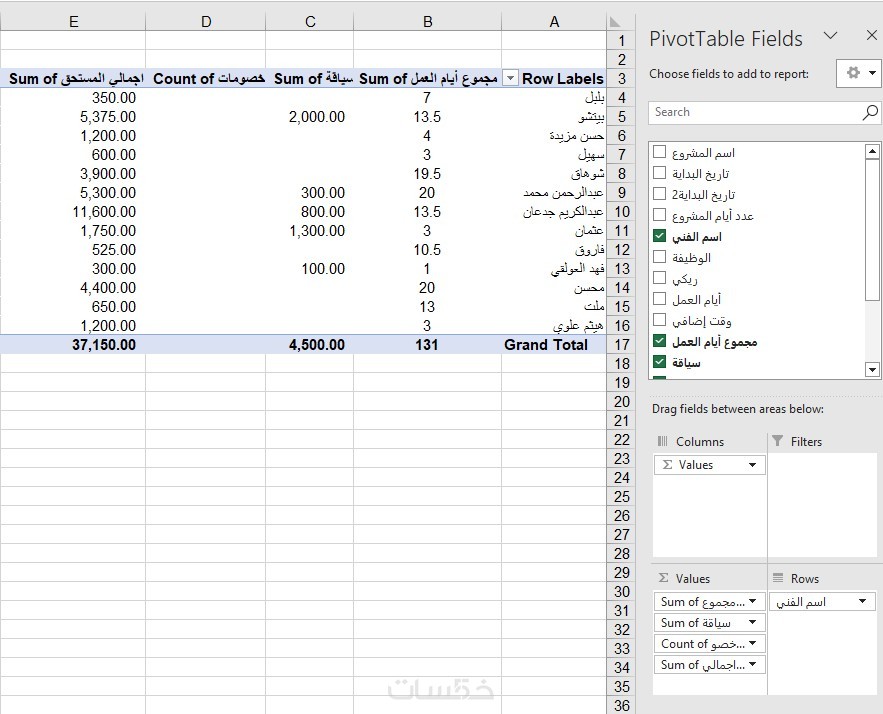 مسك الدفاتر المحاسبية باستخدام برنامج الاكسل وتحليل النتائج