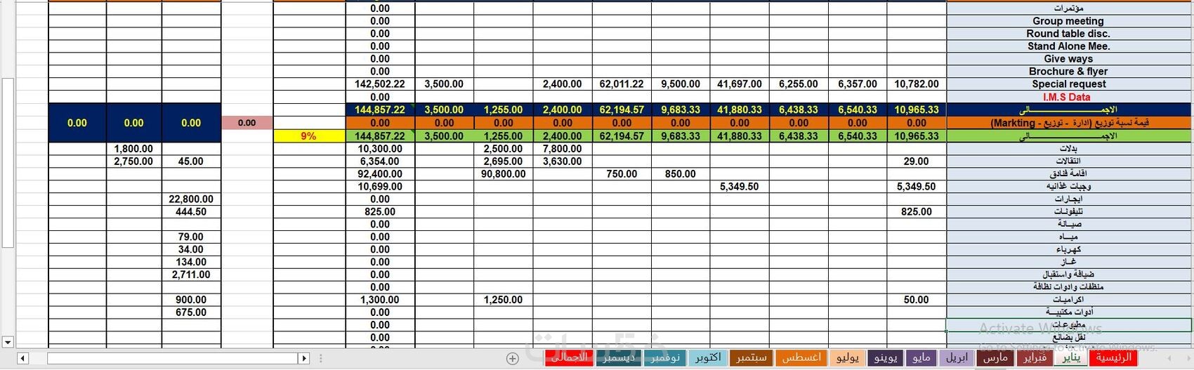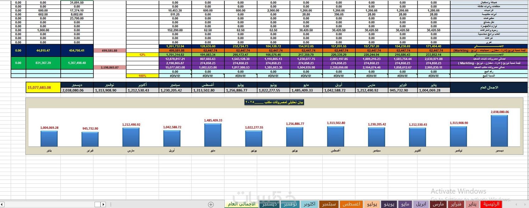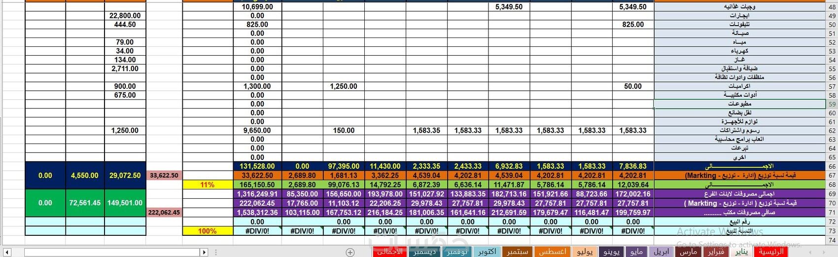 برنامج اكسل لادارة المبيعات و المصروفات و المشتريات EXCEL