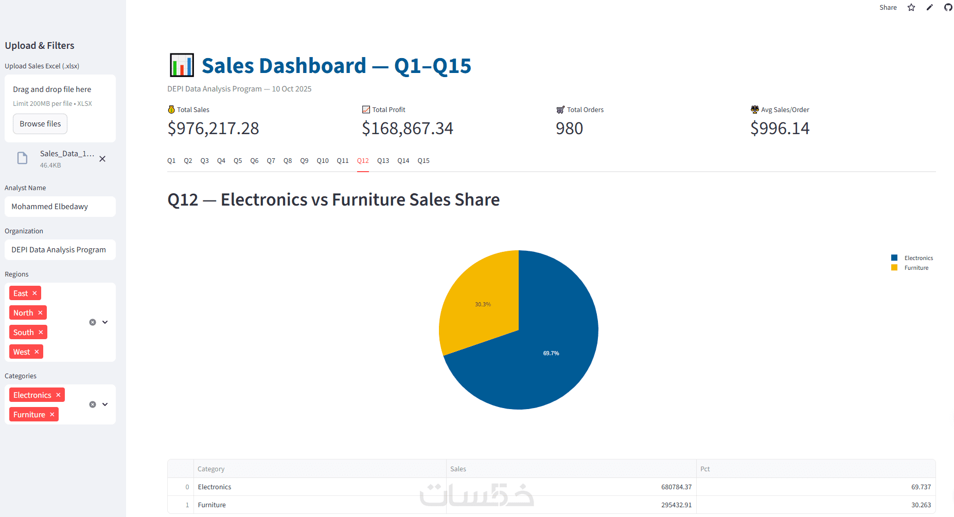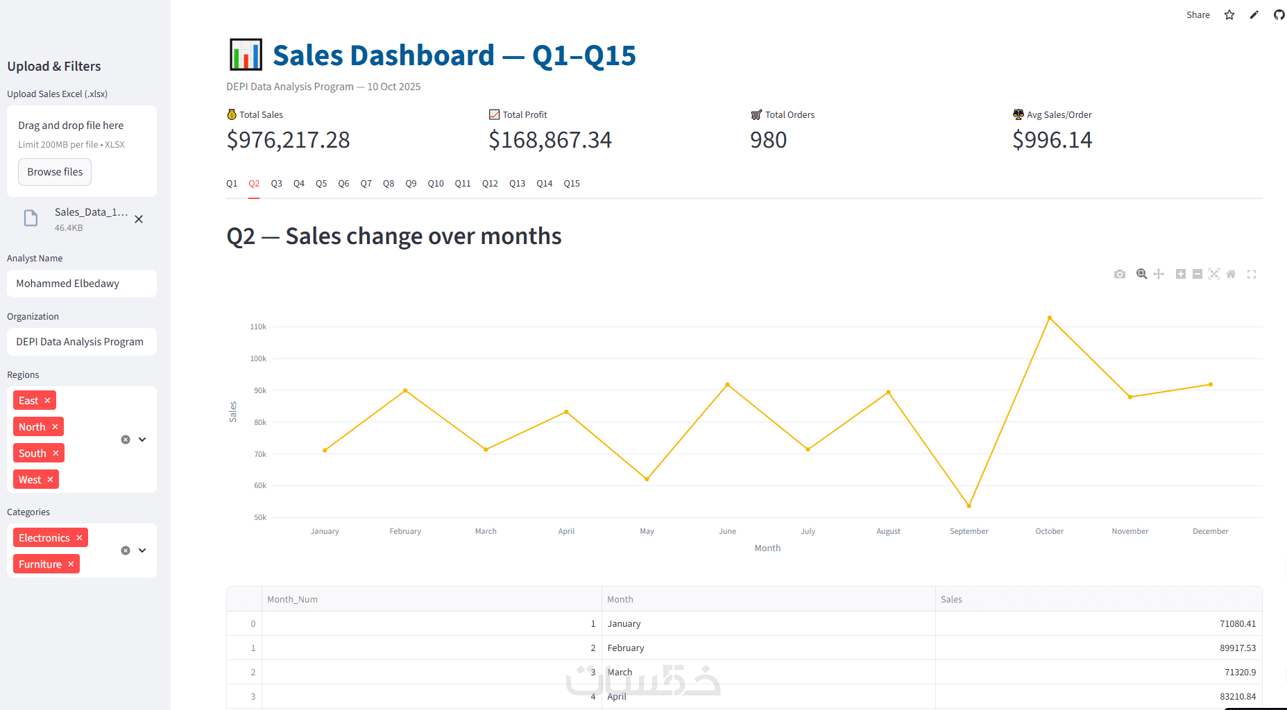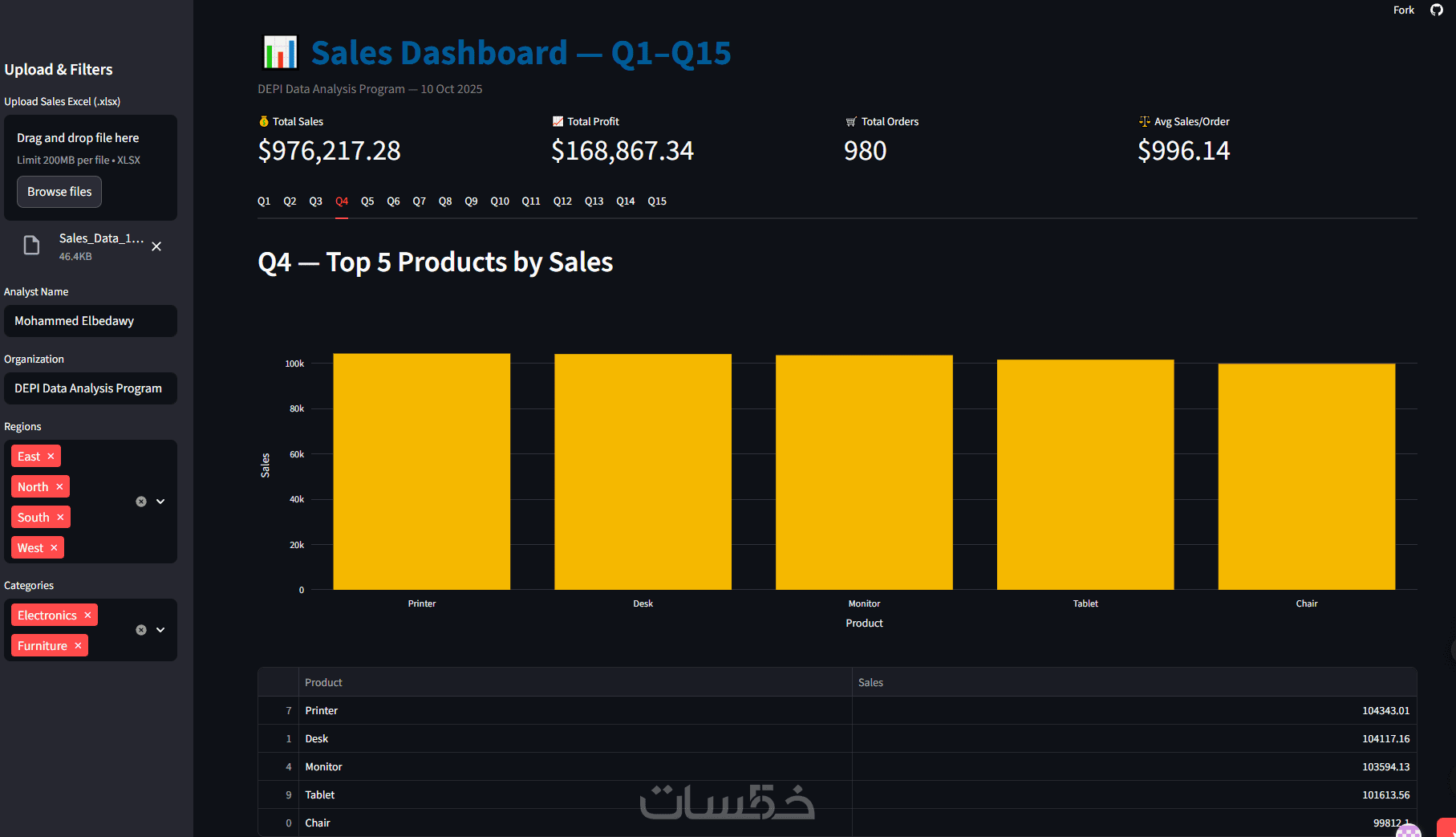 إعداد لوحة معلومات المبيعات