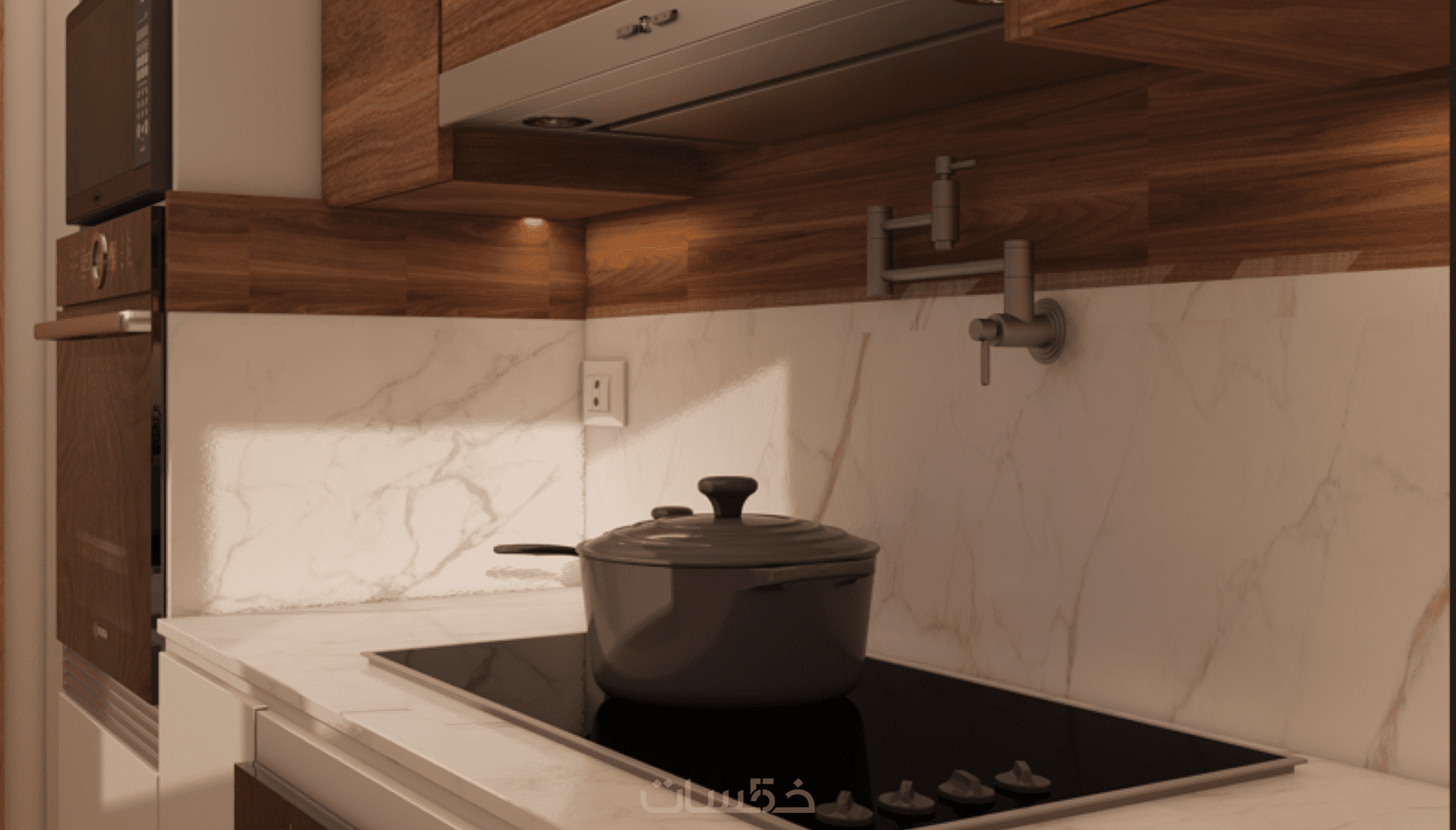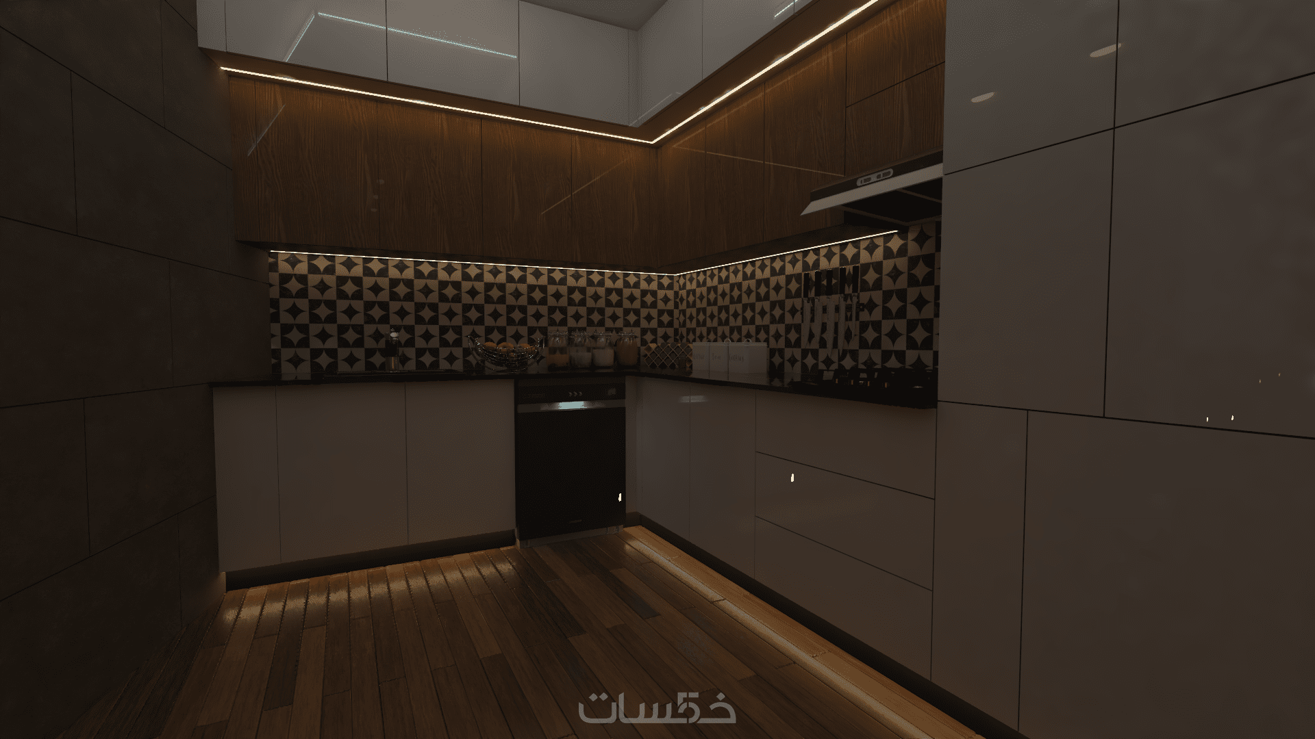 تصميم داخلي 3دي لمطبخ بشكل واقعي واحترافي