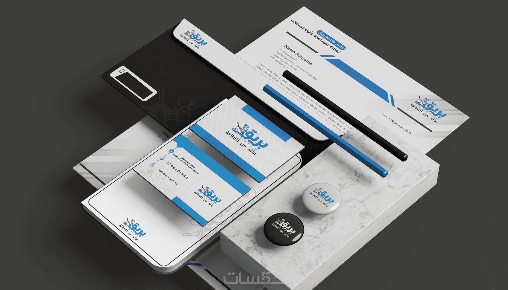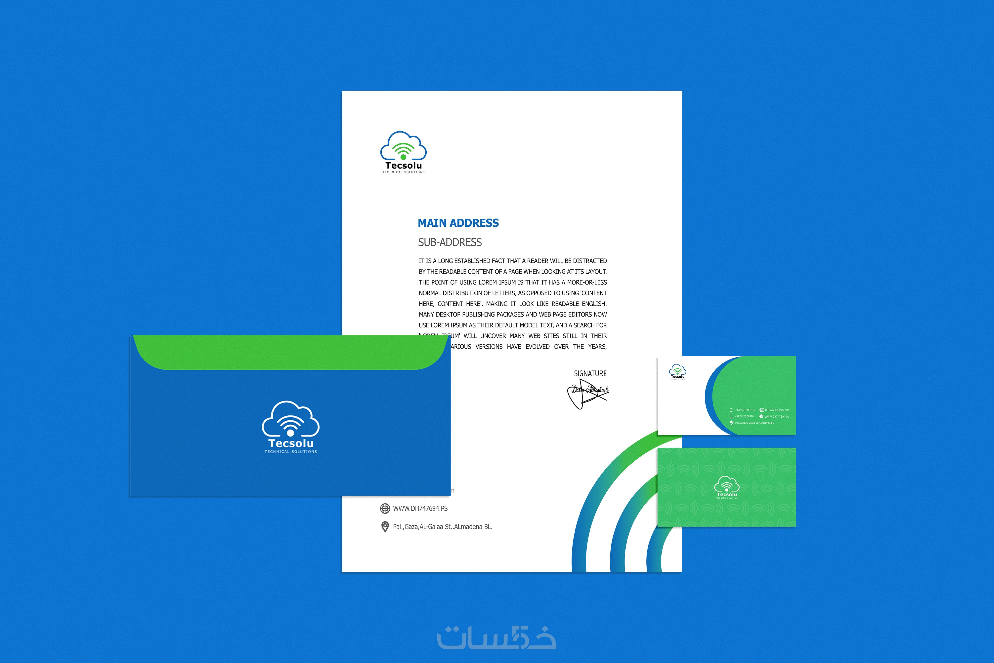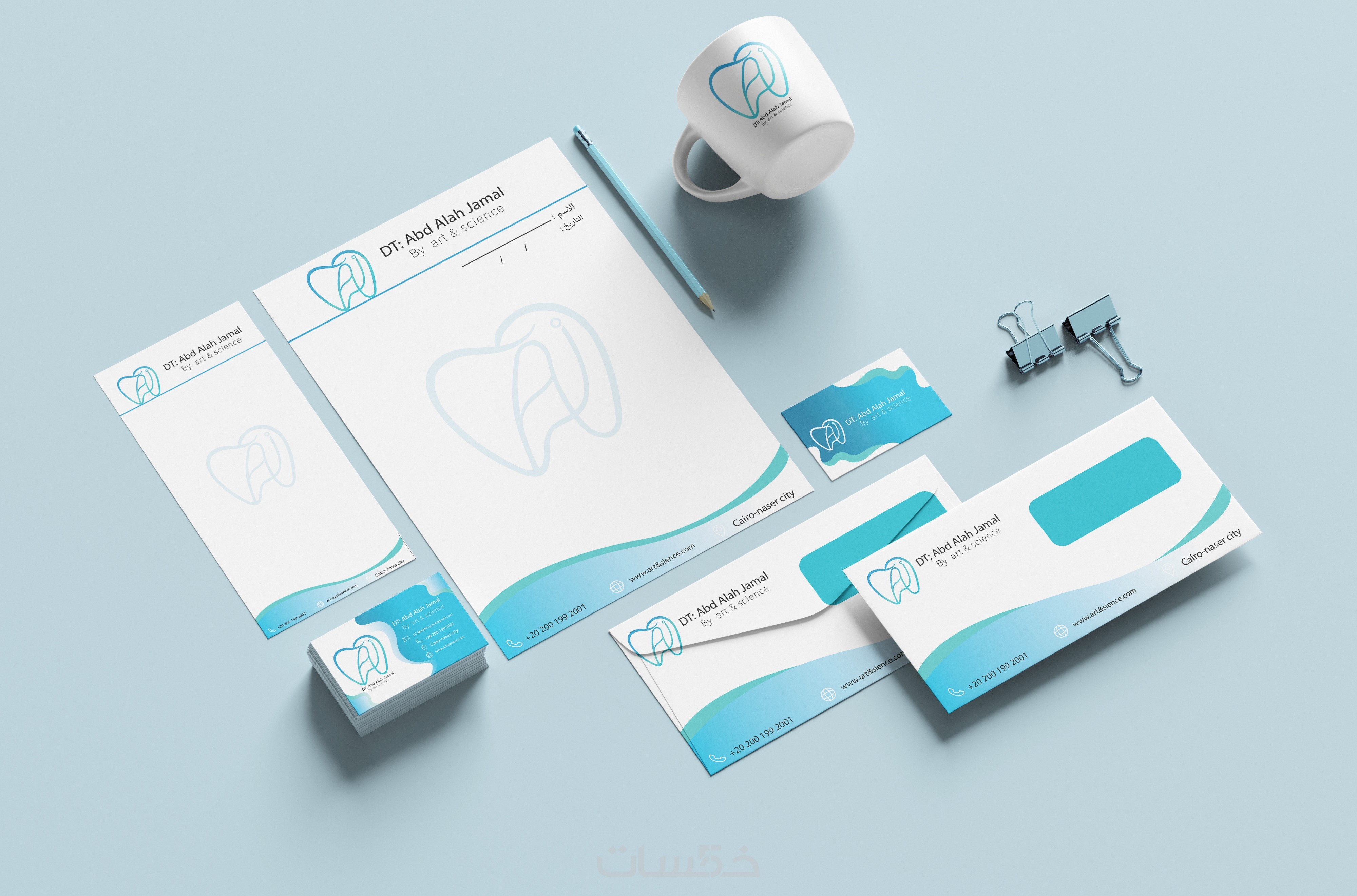 تصميم هويه تجارية ( بطاقه عمل _ ورق مراسلات _ مظروف)