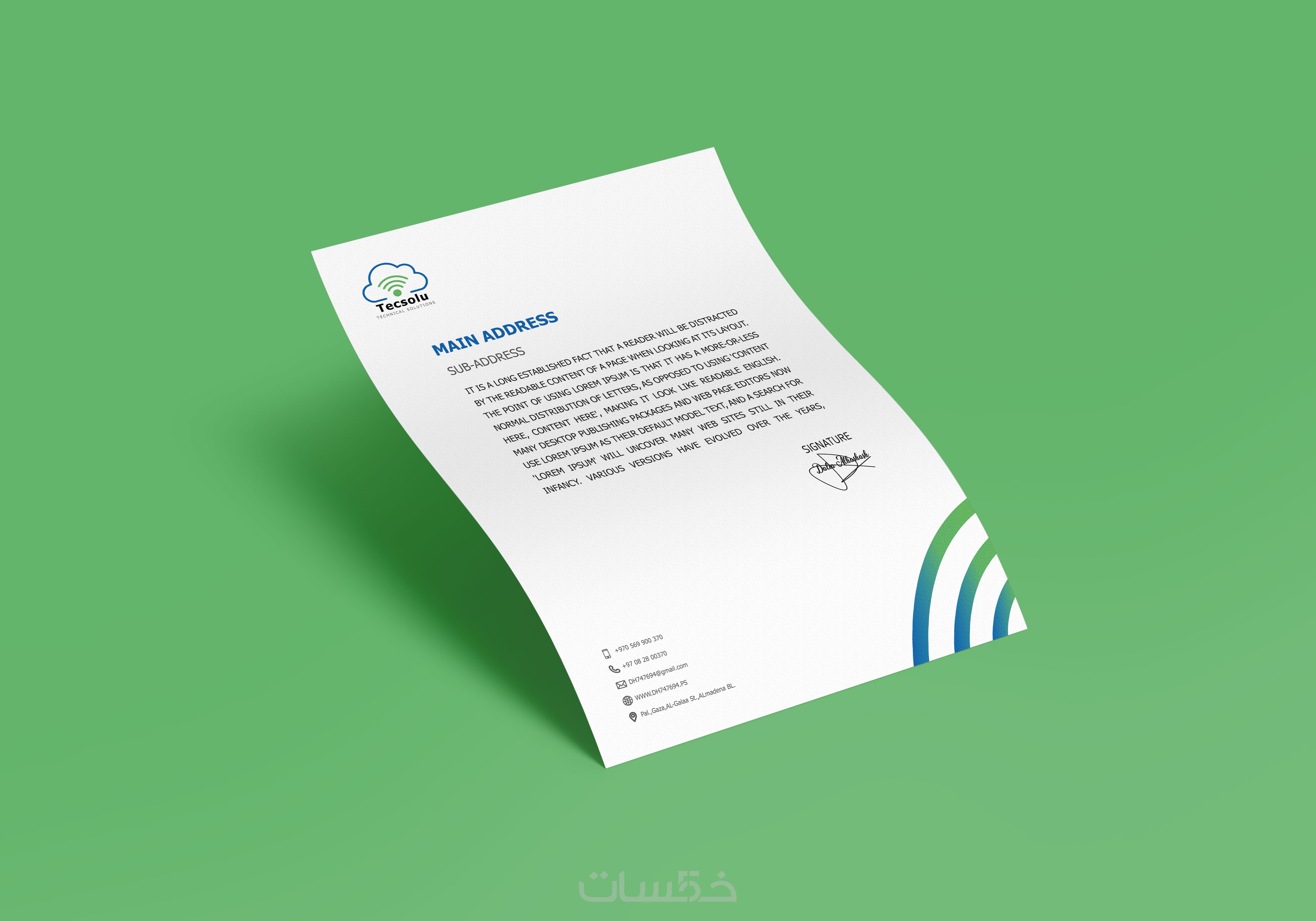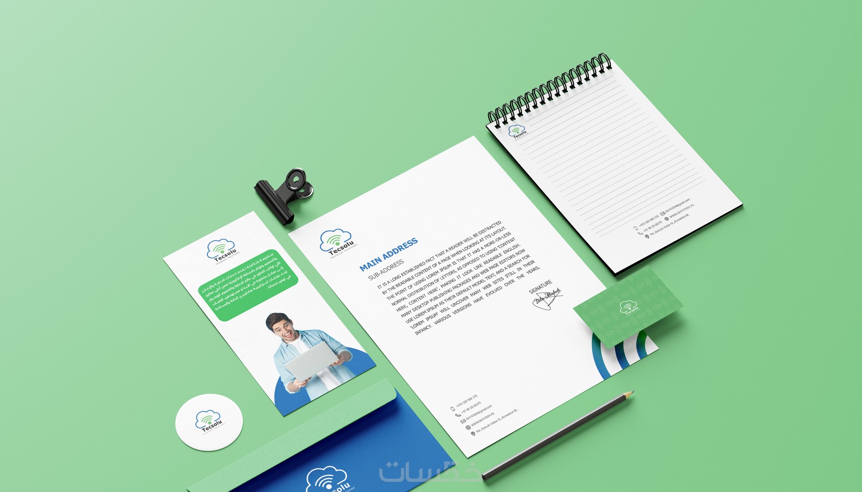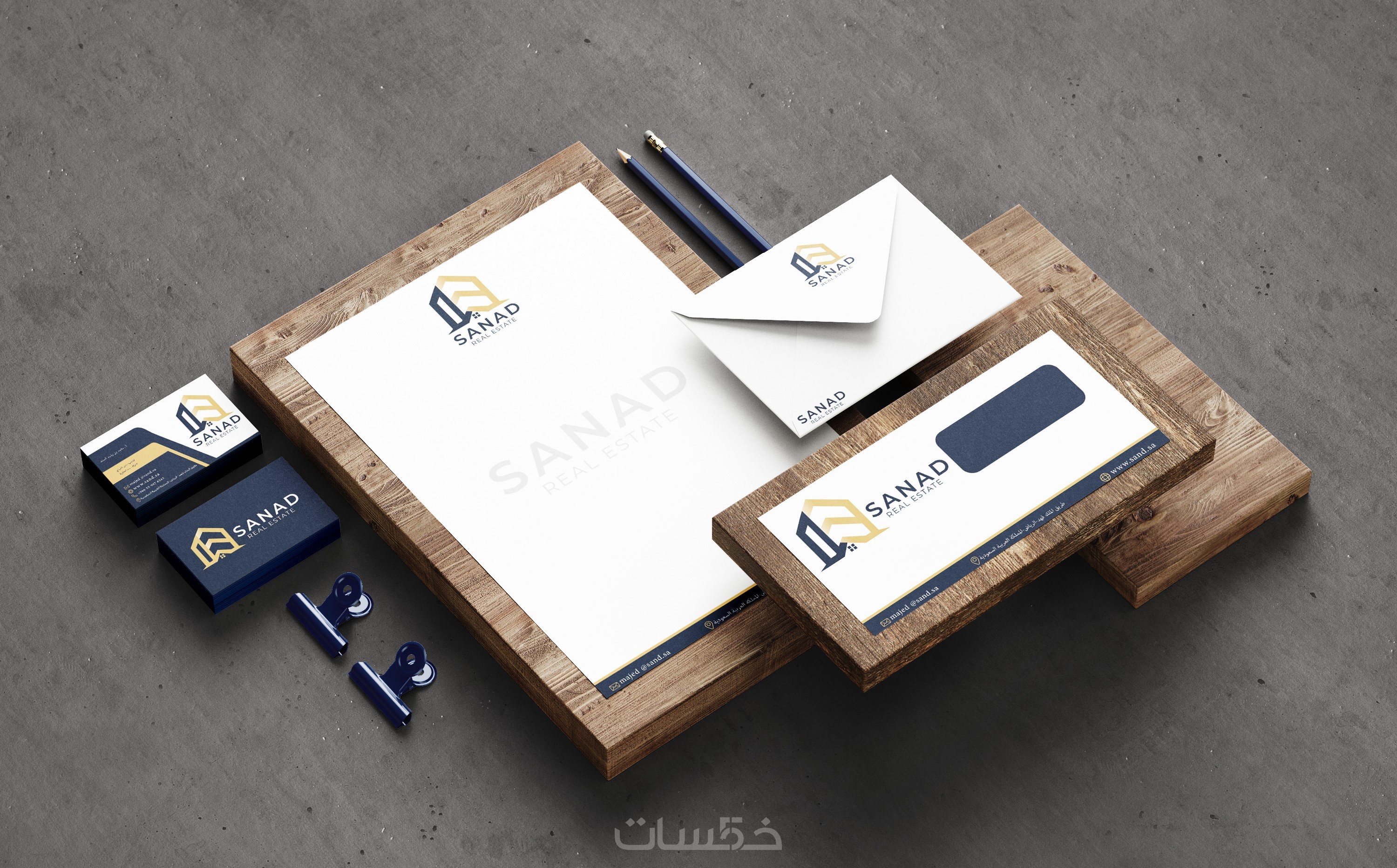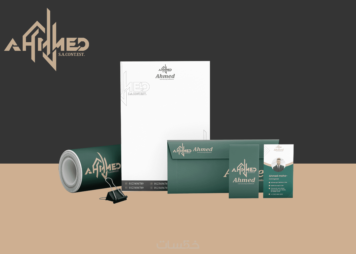 تصميم هويه تجارية ( بطاقه عمل _ ورق مراسلات _ مظروف)