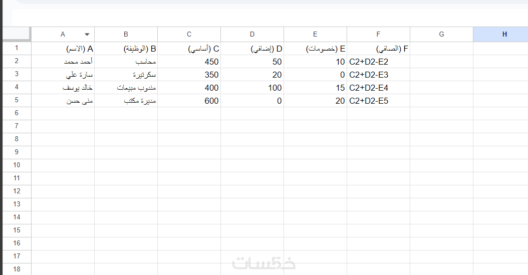 مدخل بيانات على برنامج الإكسل وعمل المعادلات المطلوبه