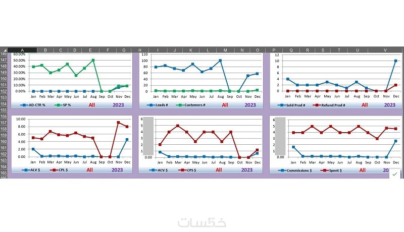 تصميم شيت إكسيل إحترافي وقاعدة بيانات ومعادلات ورسوم بيانية