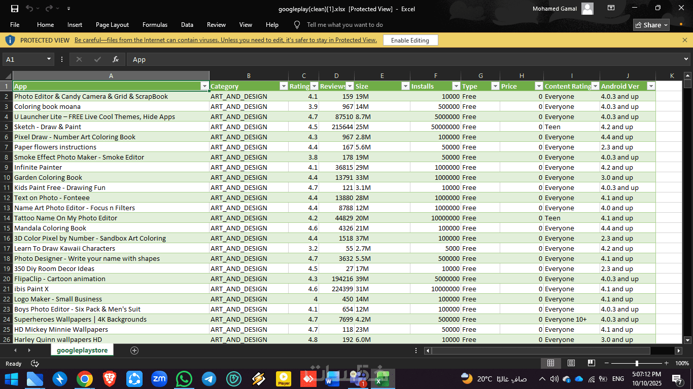 معالجة و تنظيف البيانات و عمل قاعدة بيانات