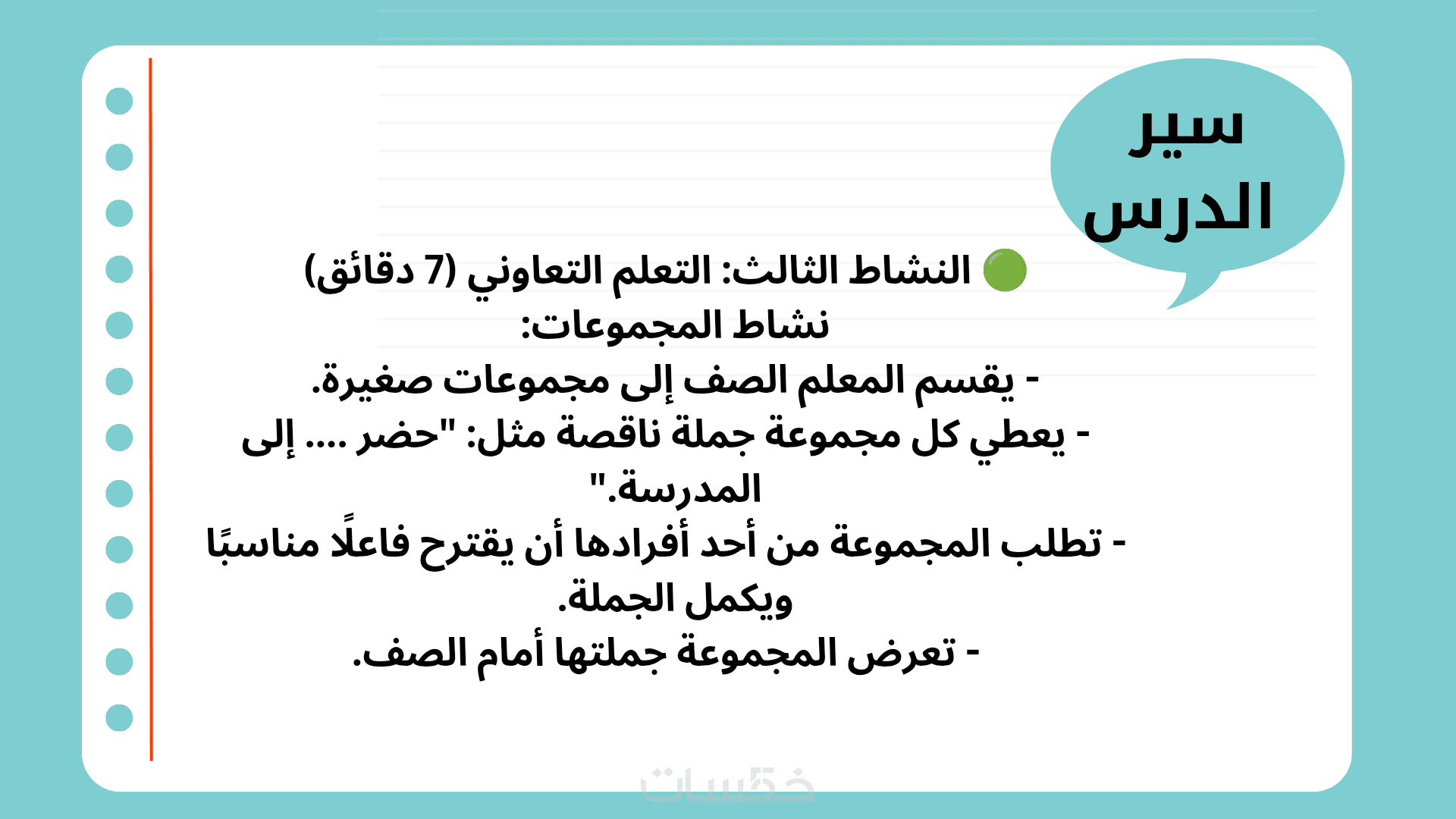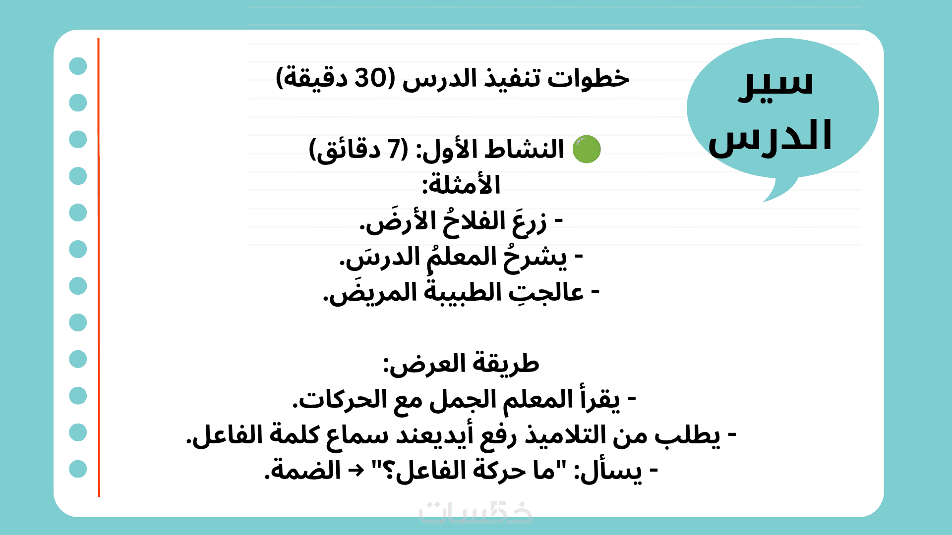 خطة درس للمرحلة الابتدائية لكافة المواد ماعدا اللغة الإنجليزية
