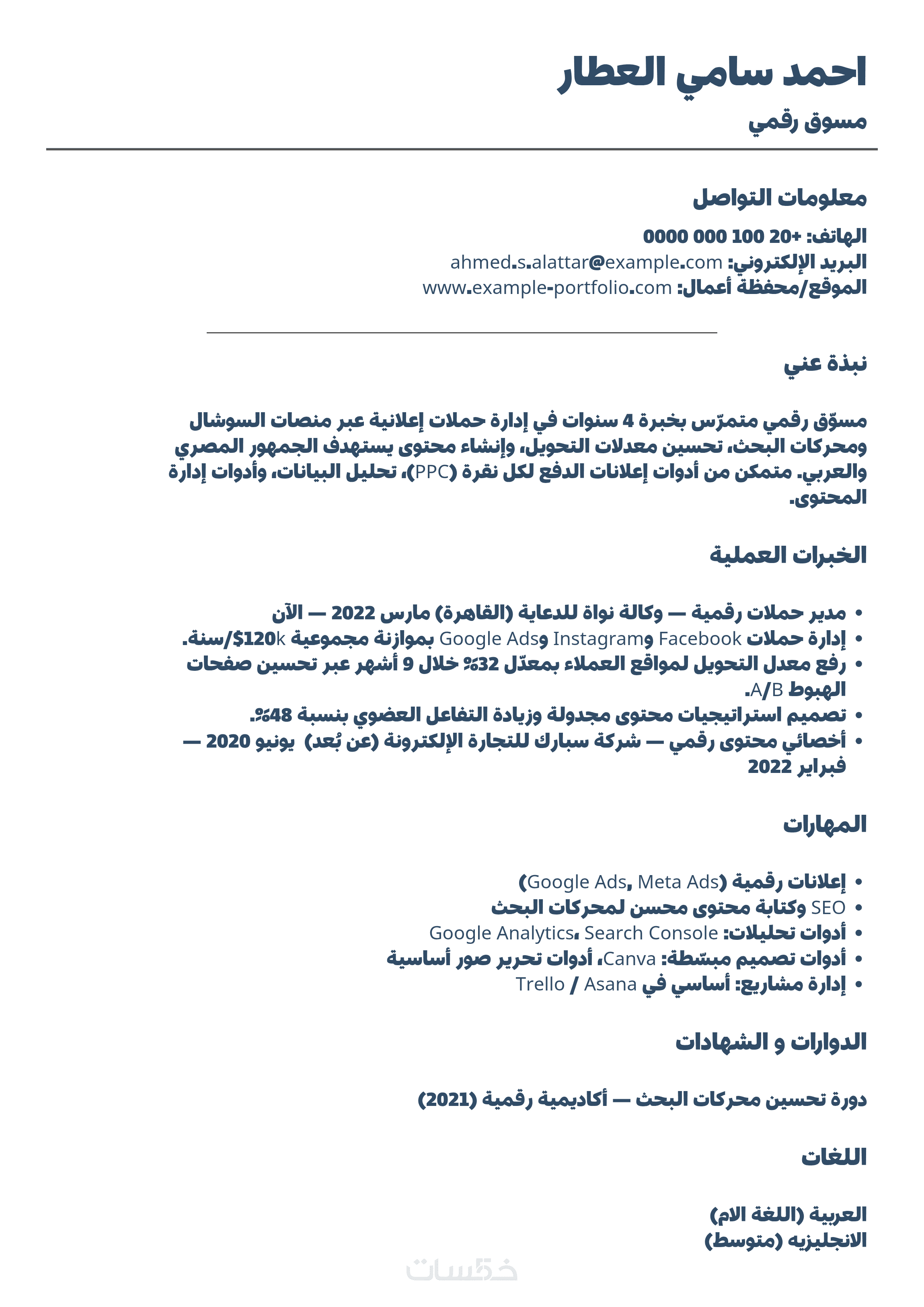 تصميم سيرة ذاتية احترافية متوافقة مع نظام ATS