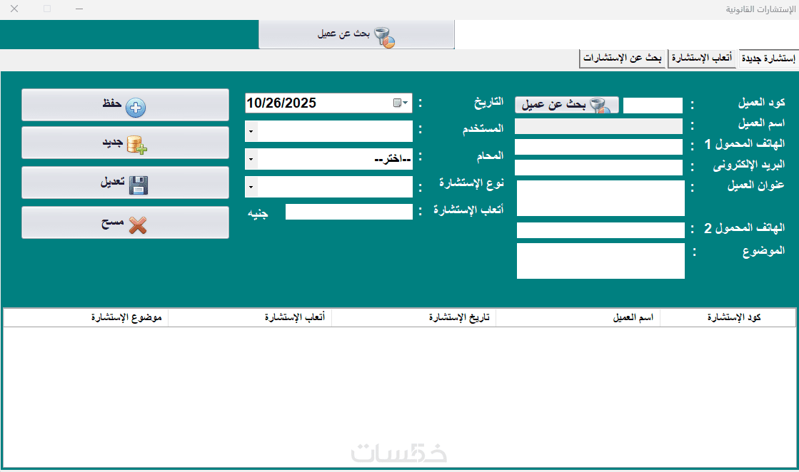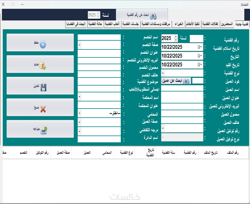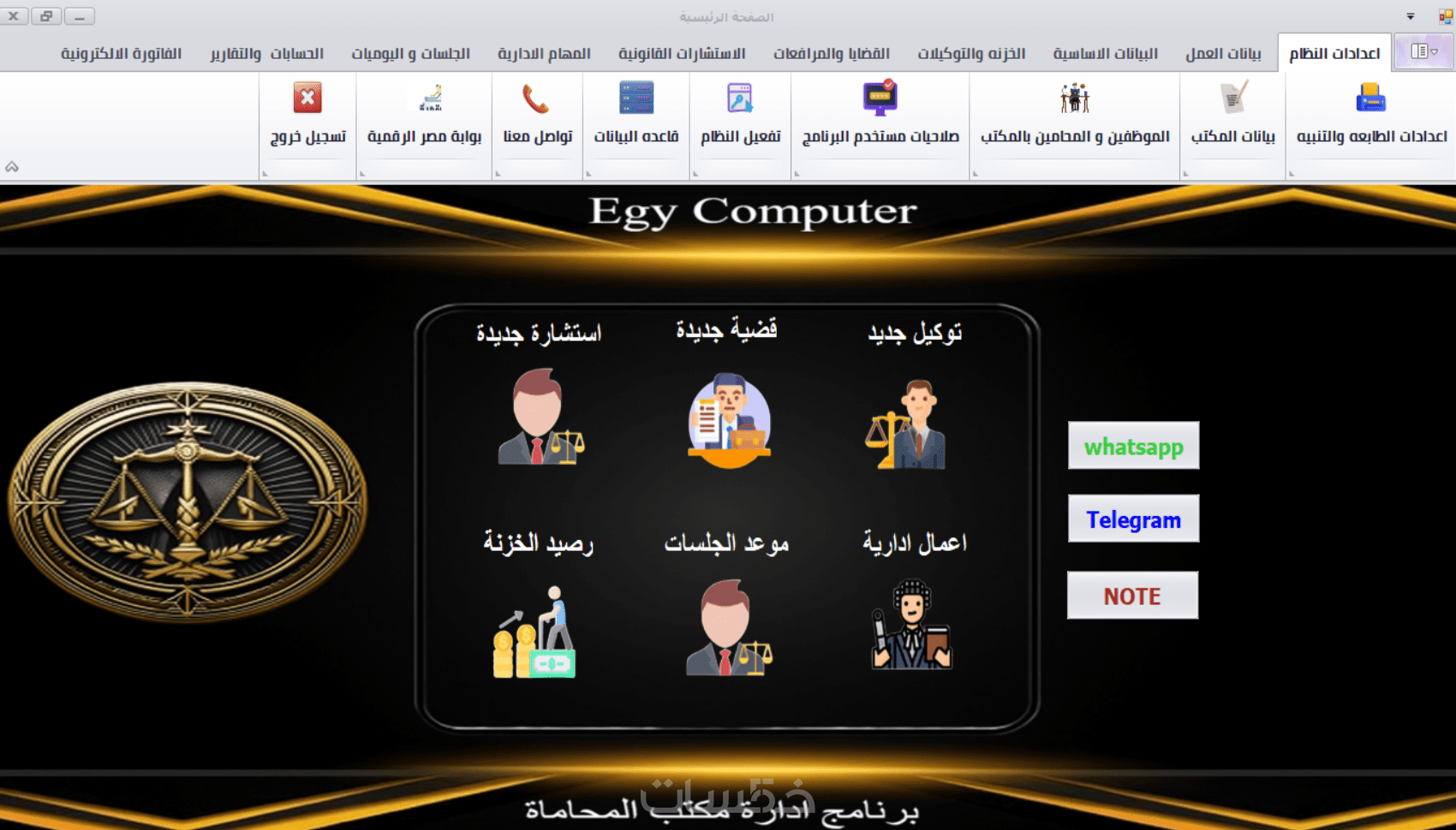 تصميم و تنفيذ برنامج إدارة مكاتب المحاماة