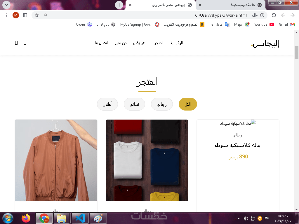 تصميم موقع ويب احترافي لمحل ملابس متجاوب مع جميع الأجهزة