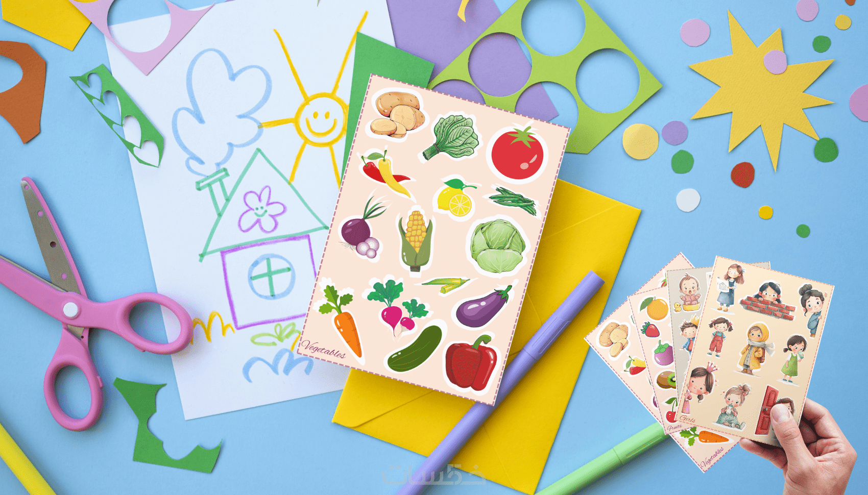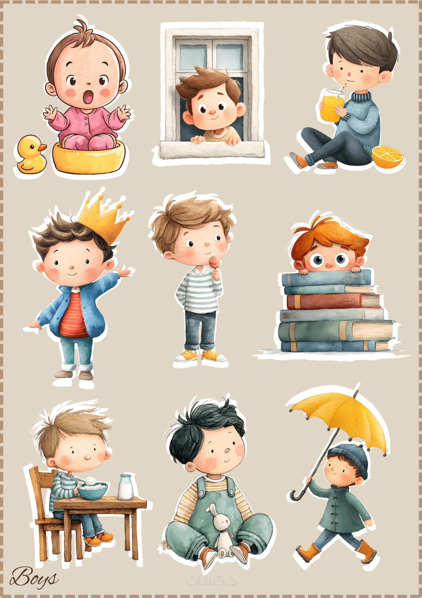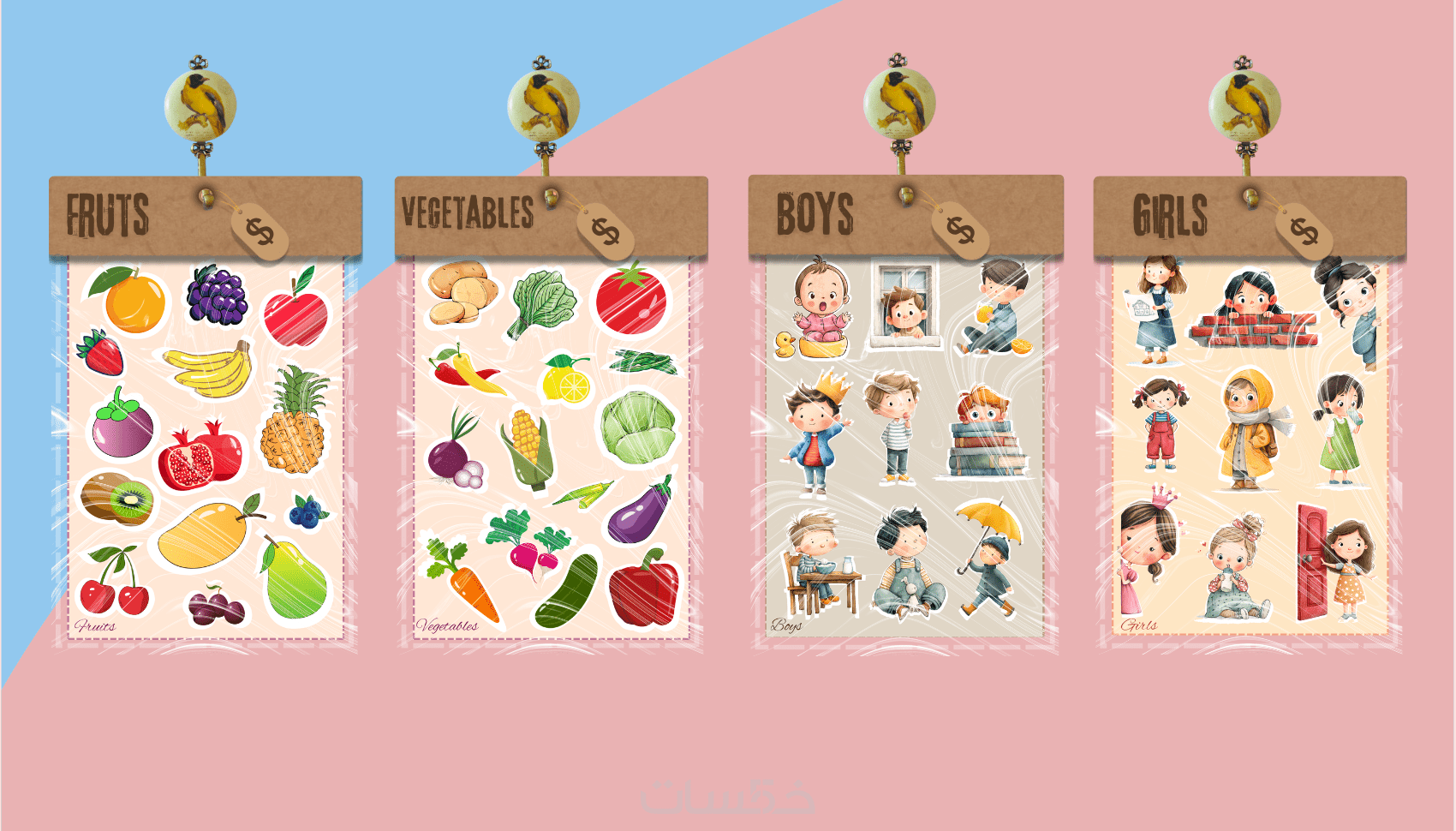 نصميم ملصقات تعريفية تيكت لاطفال المدارس و استيكر لأدو