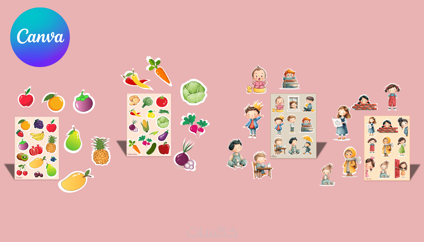 تصميم حزمة ملصقات Stickers احترافية للمشاريع التعليمية