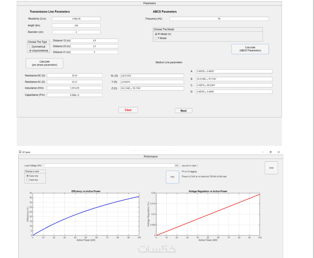 مشروع MATLAB خاص بتحليل خطوط النقل ثلاثية الأطوار