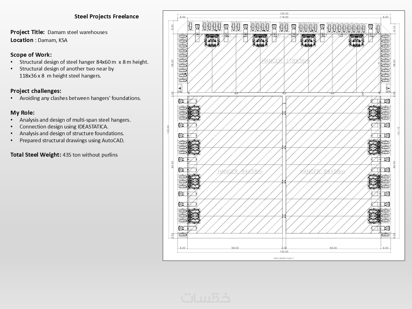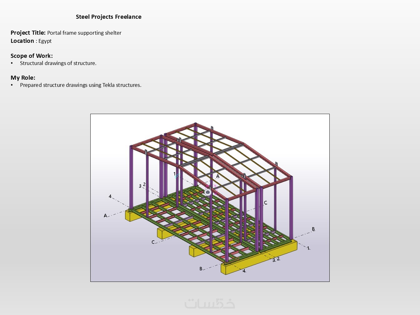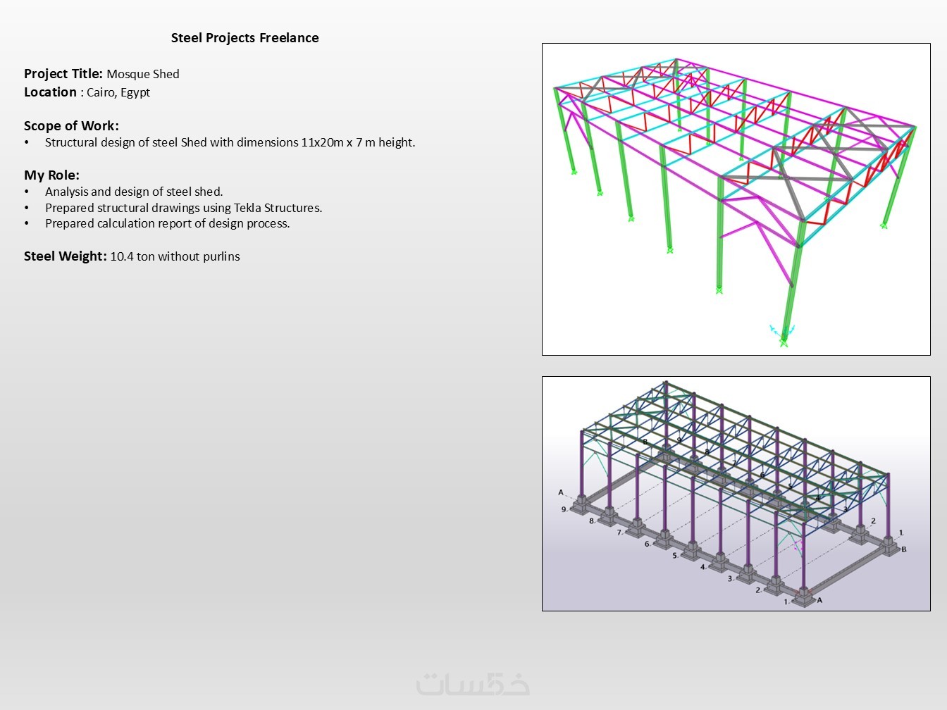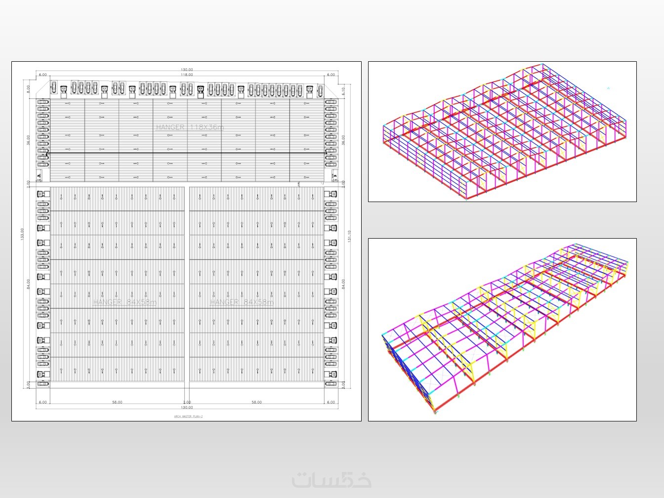 دراسة وتصميم الهياكل والمنشآت المعدنية مع جميع الرسومات
