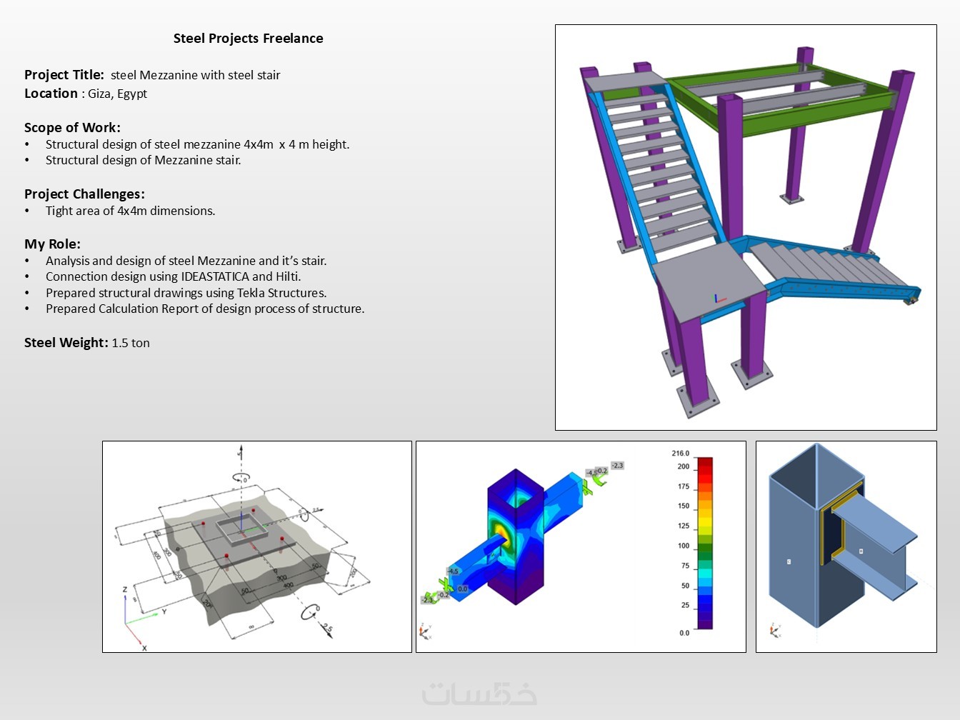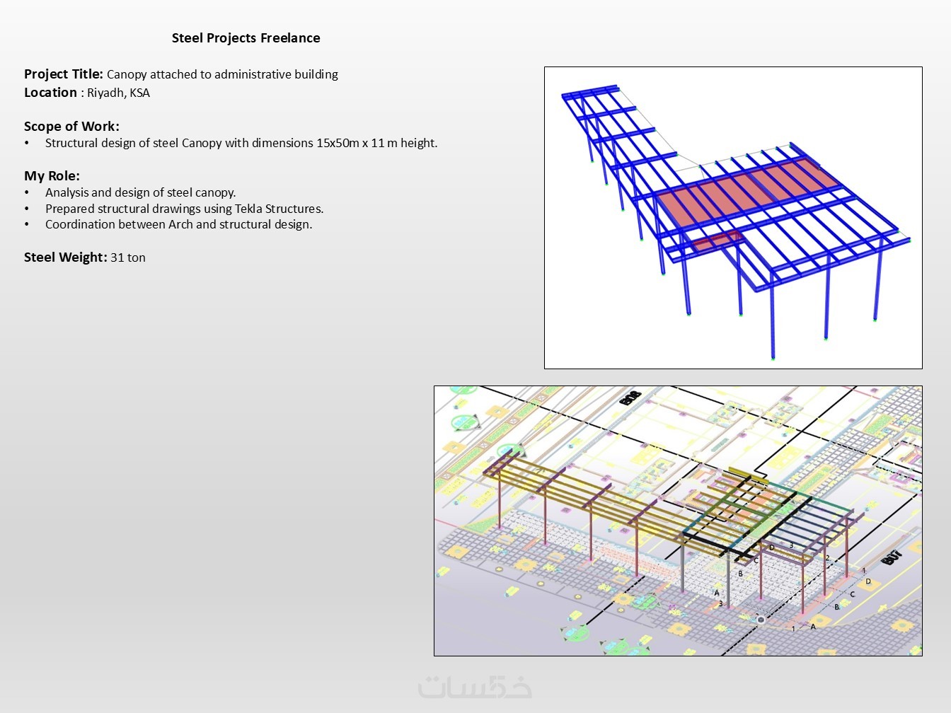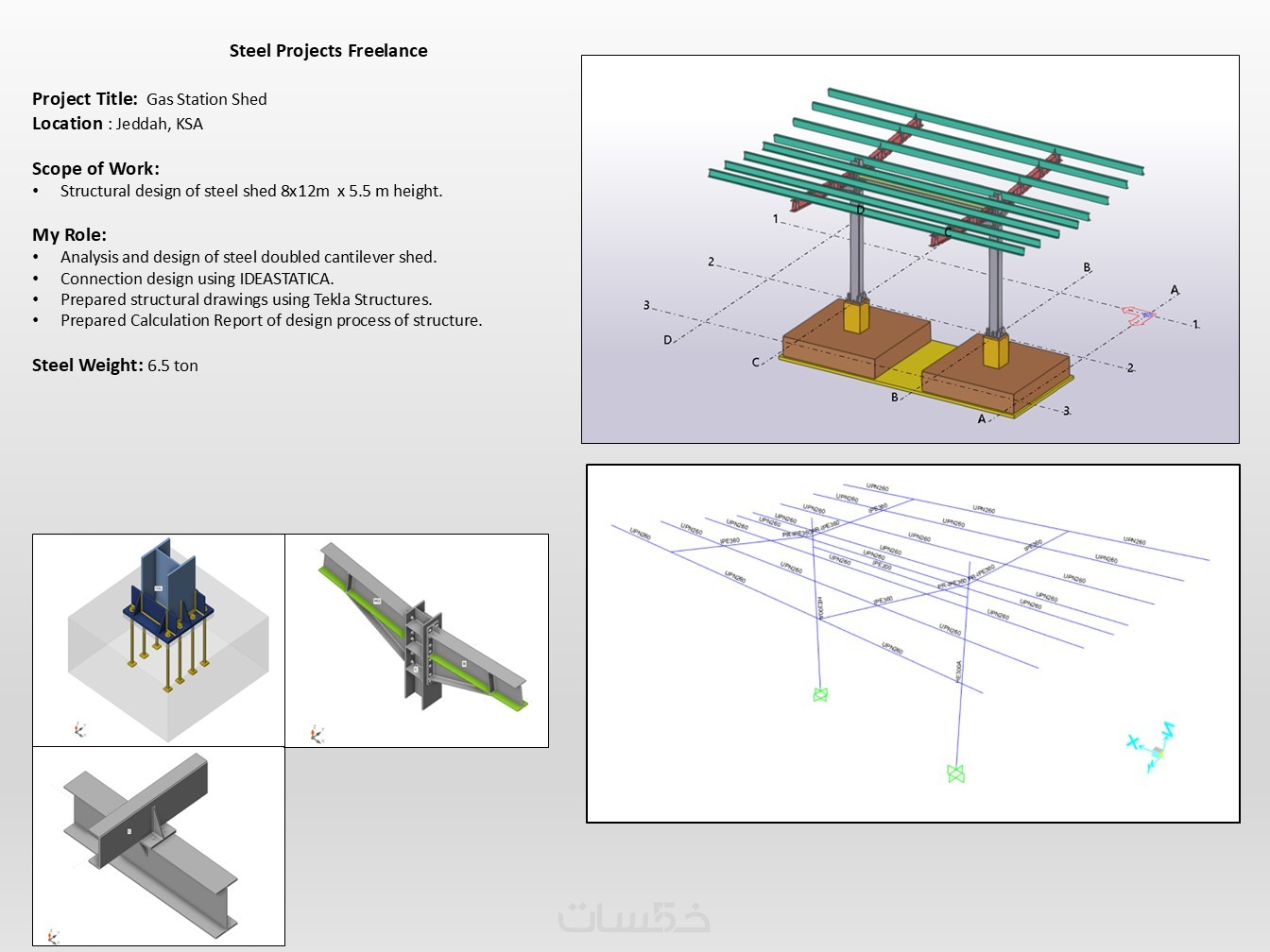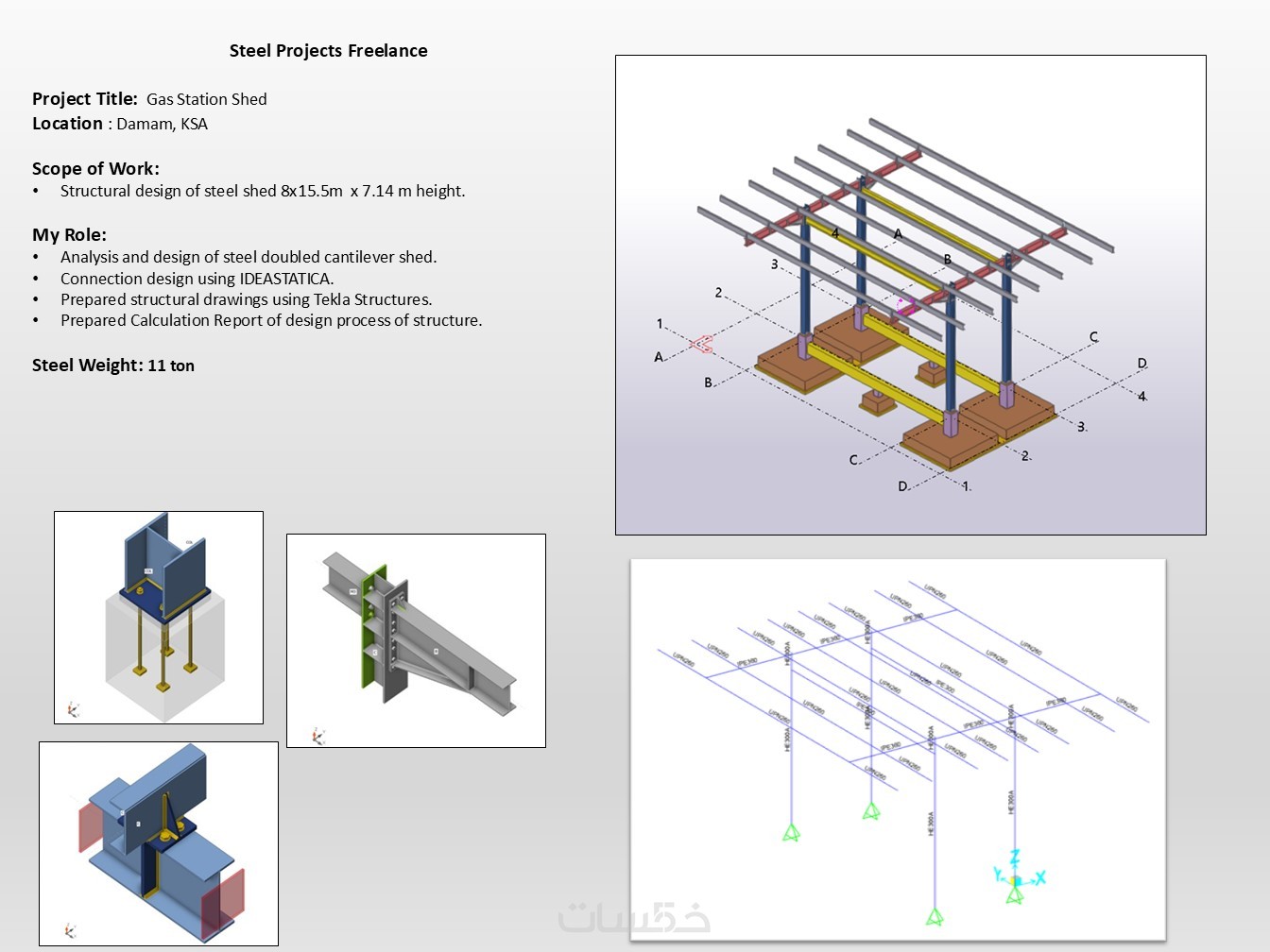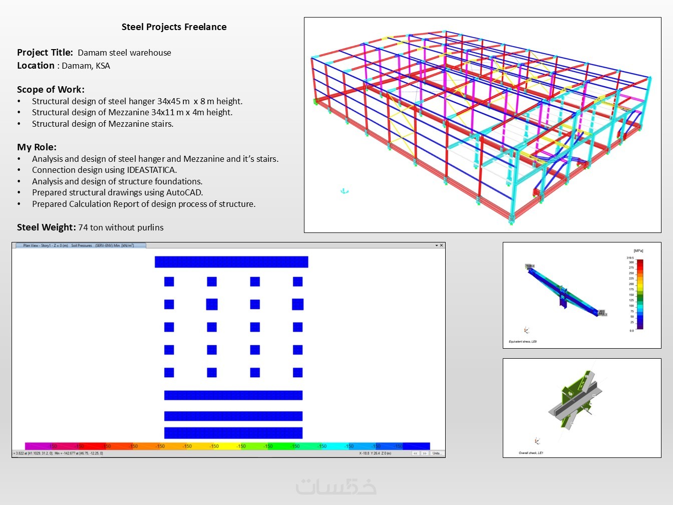 دراسة وتصميم الهياكل والمنشآت المعدنية مع جميع الرسومات
