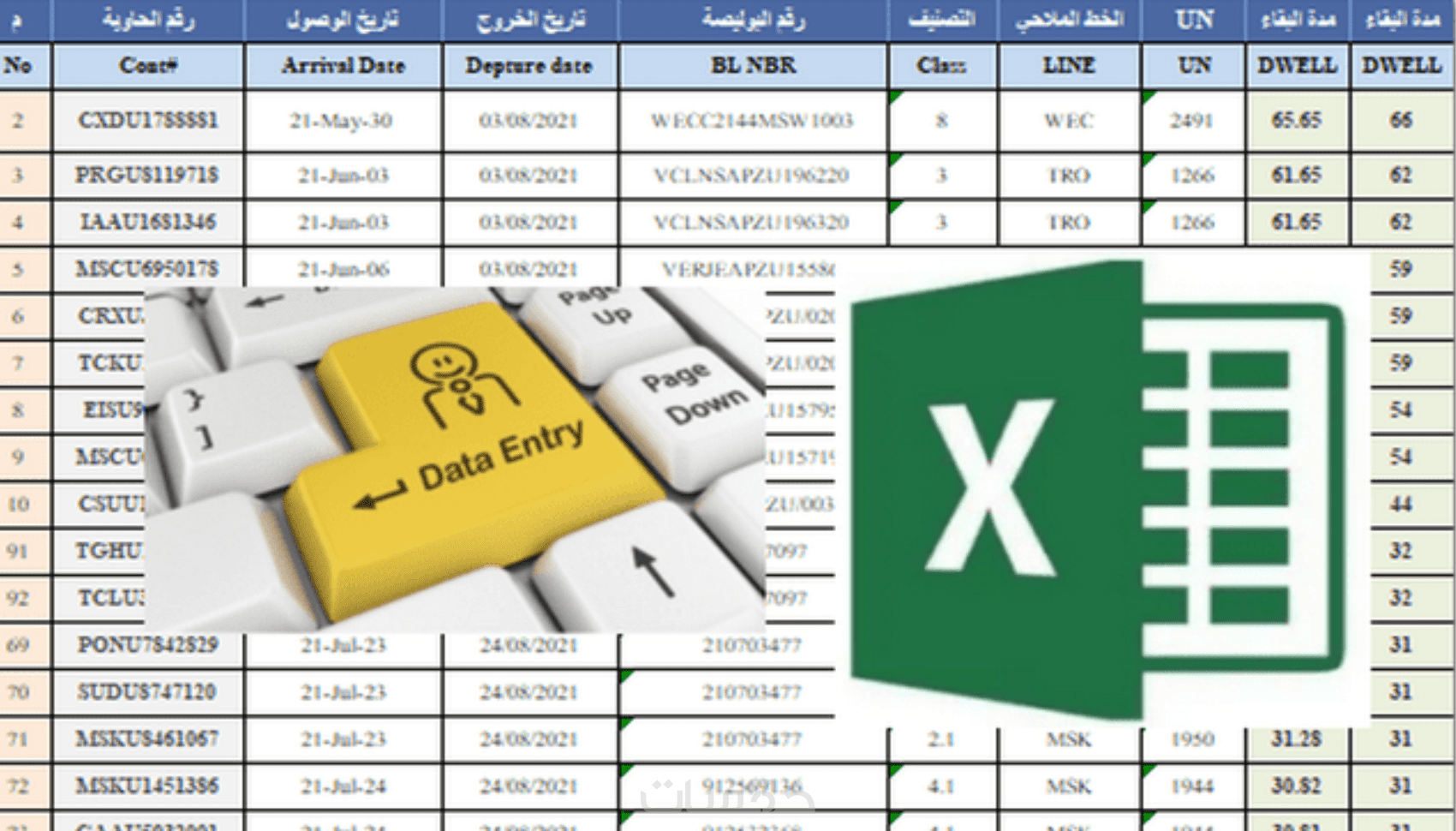 ادخال البيانات والتنسيق على اكسل