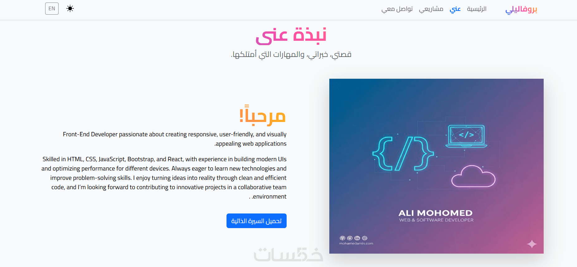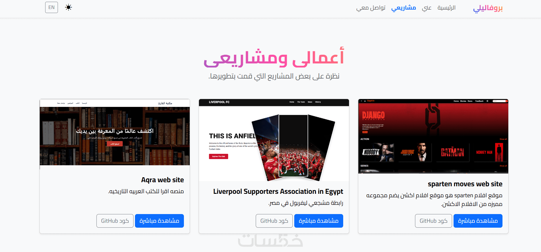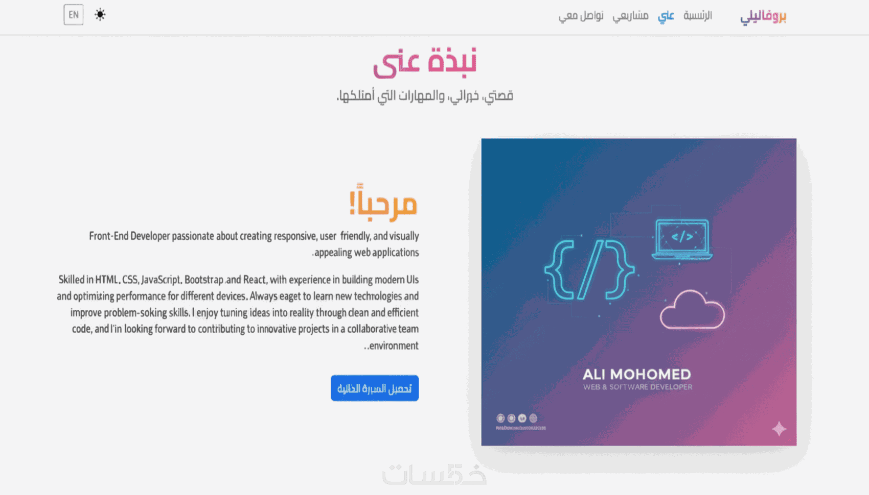 تصميم portfolio احترافي بتقنيات حديثة وشكل عصري