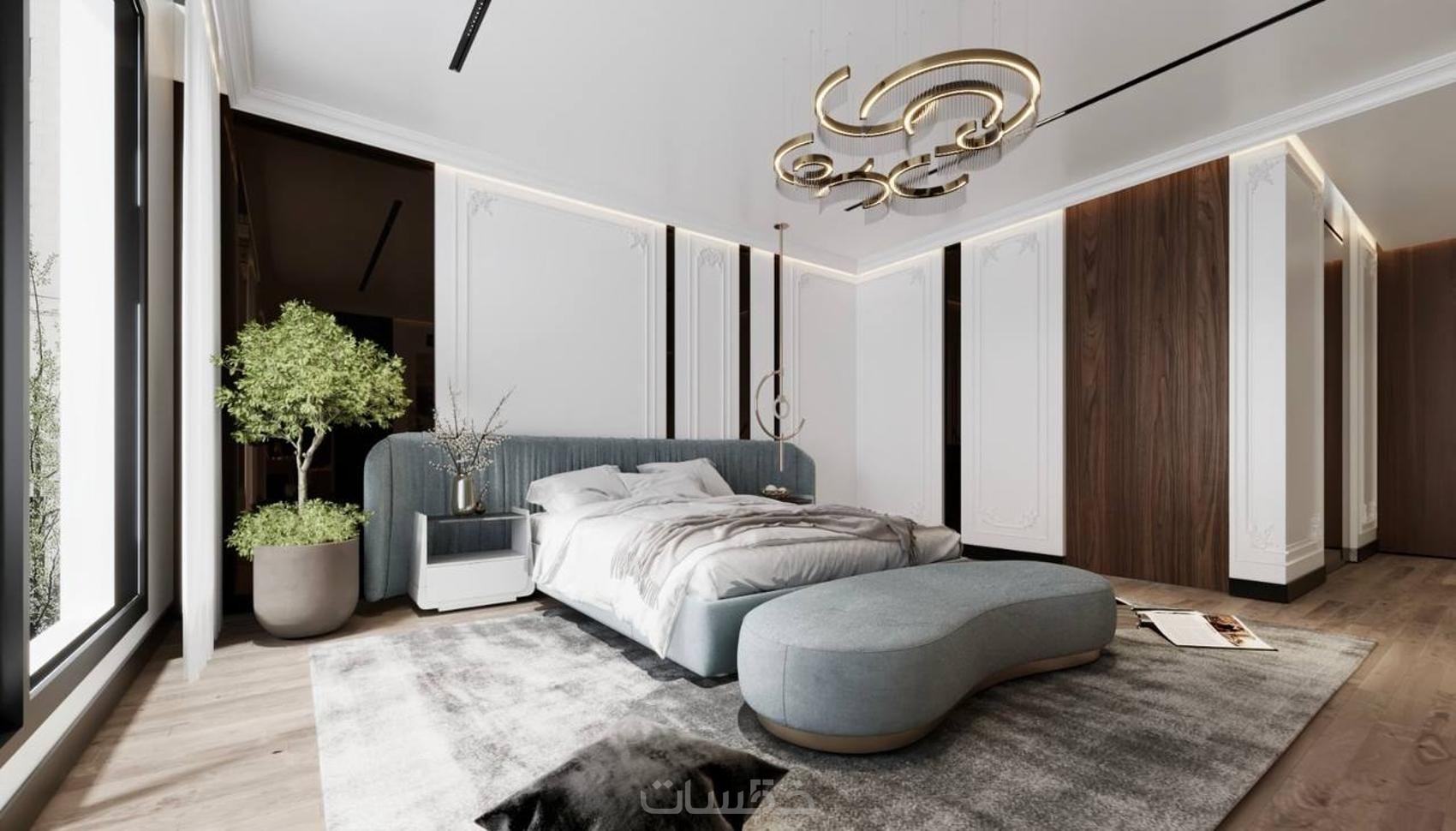 تصميم داخلي فيلا كاملة ستايل نيو كلاسيك مودرن مع 3D واقعي