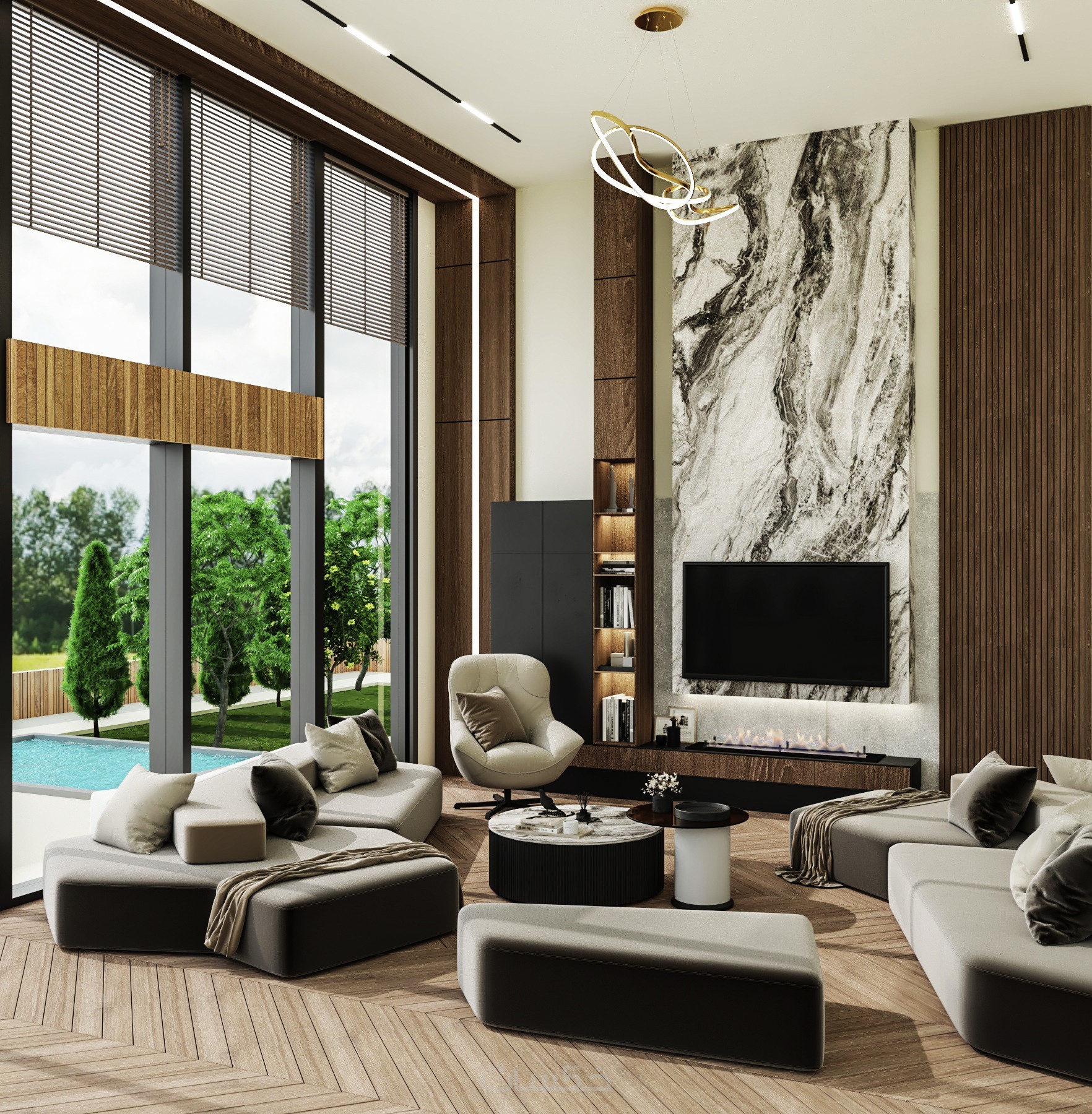 تصميم ديكور داخلي مودرن ثلاثي الأبعاد