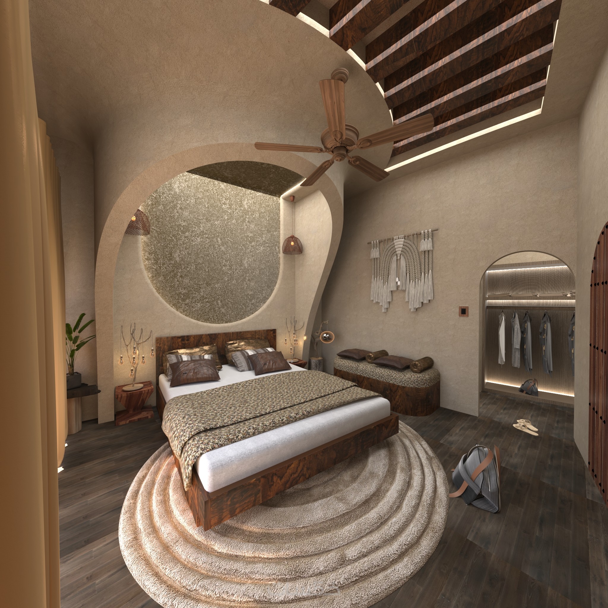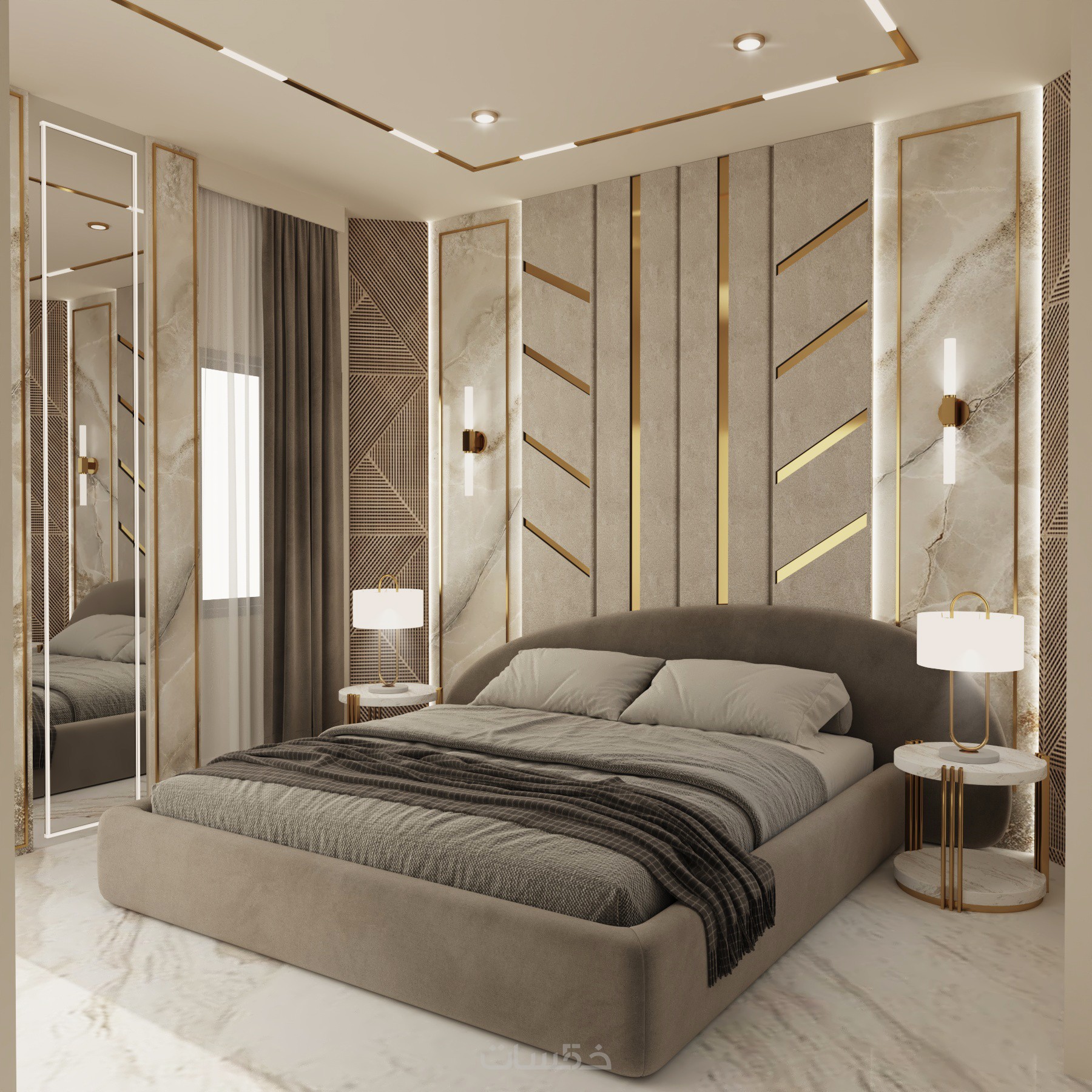 غرف النوم الرئيسية مصممة بالستيل المودرن البسيط و بها تجاليد
