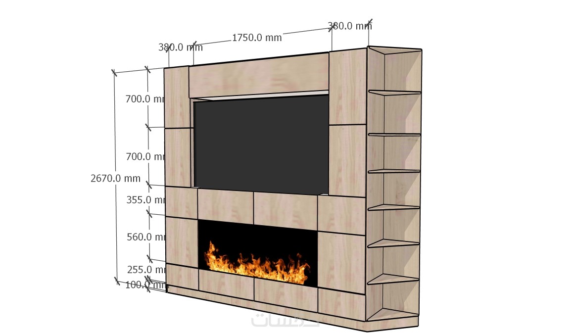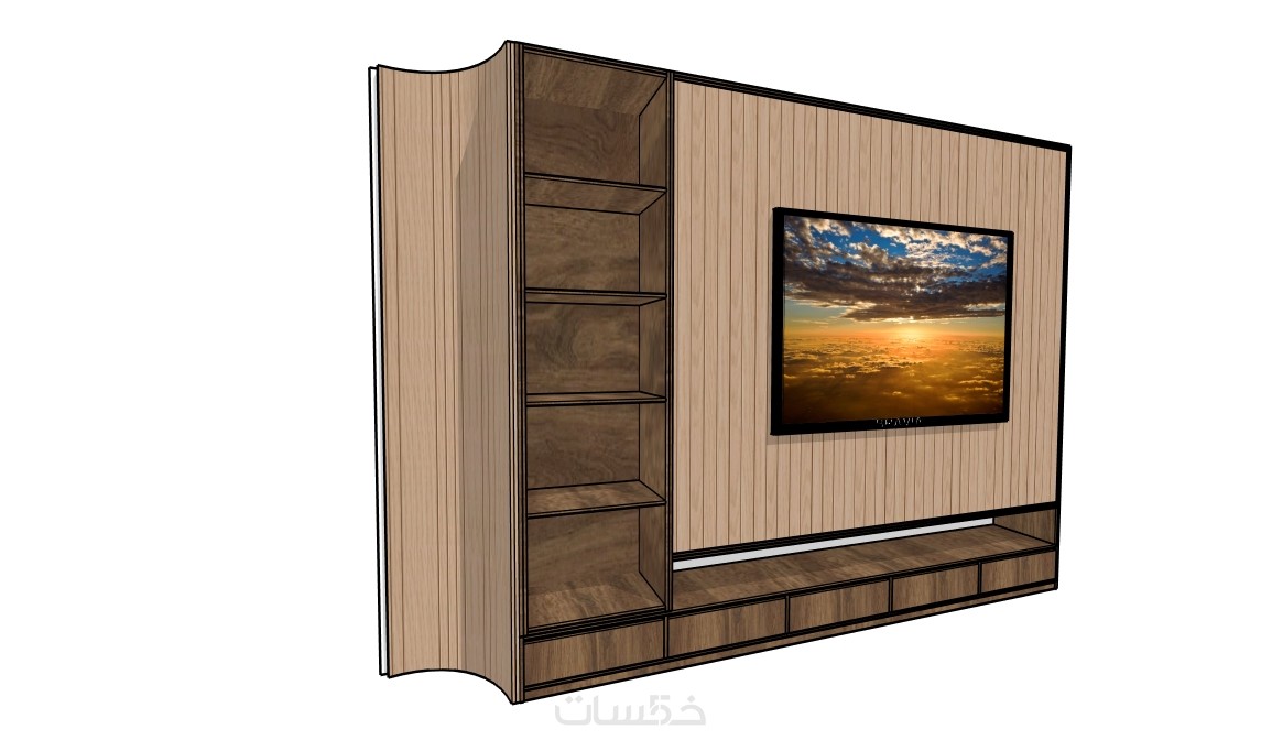 تصميم وحدة تلفاز مودرن مع المقاسات وكات ليست ورندر
