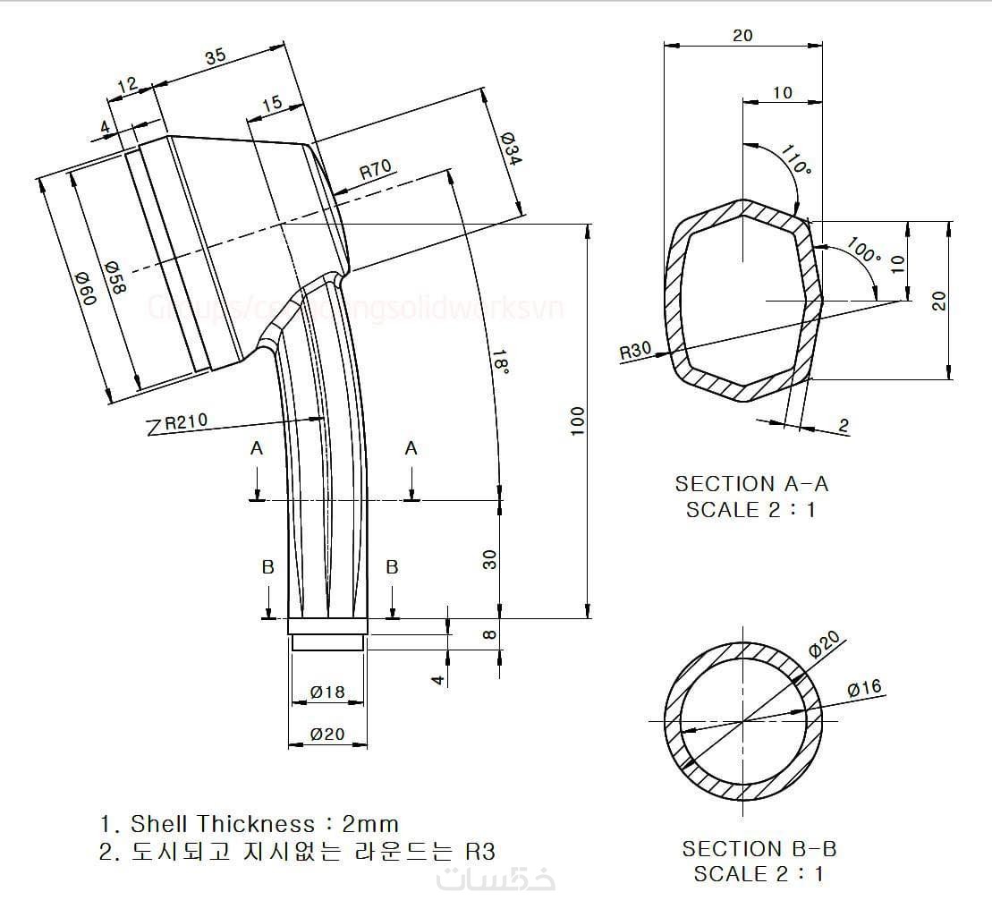تصميم Solidworks اجزاء ميكانيكيه وعمل sheet 2d للمقاسات