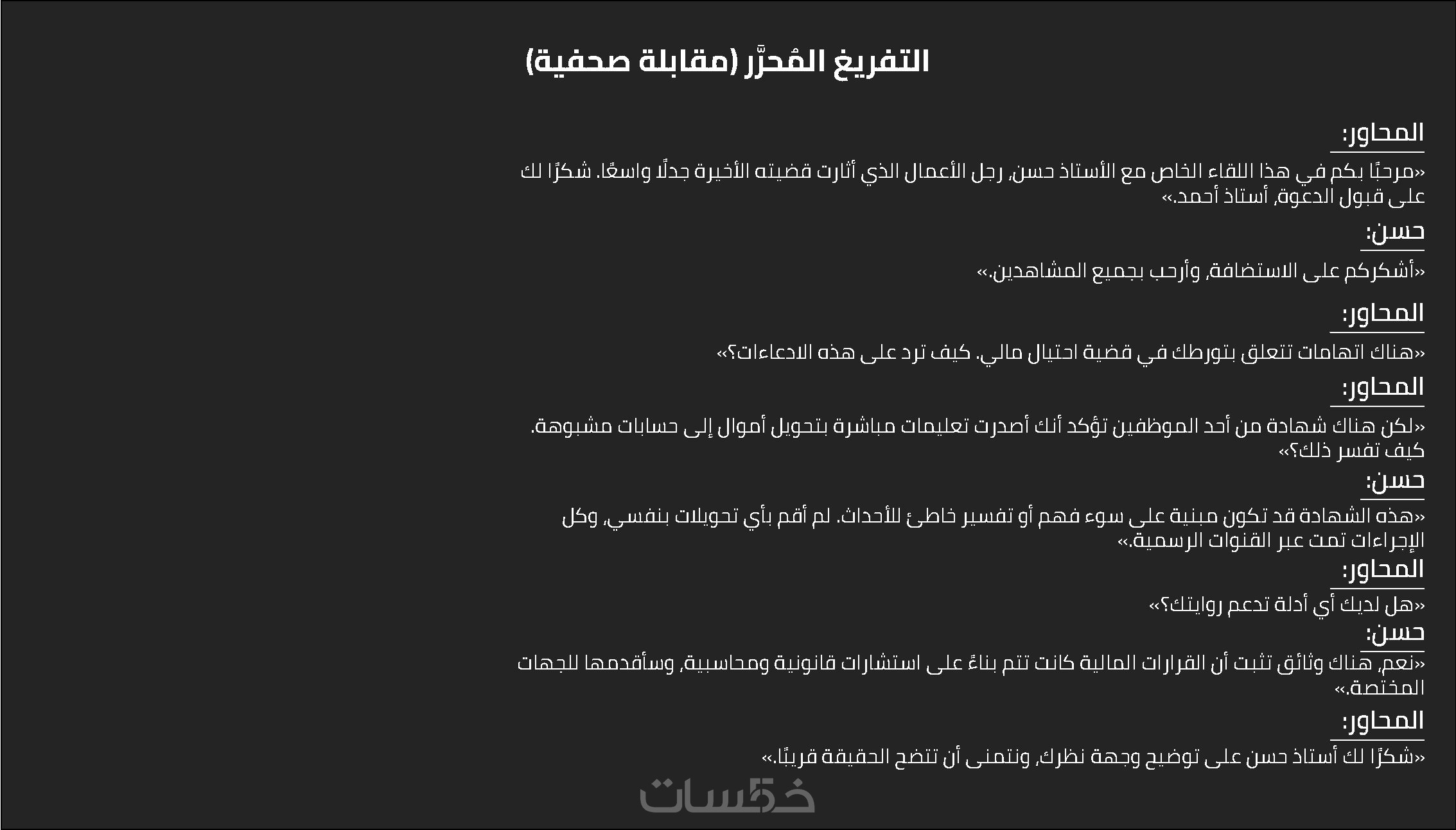 سأقدم تفريغ صوتي للقاءات والمقابلات والندوات الصوتية