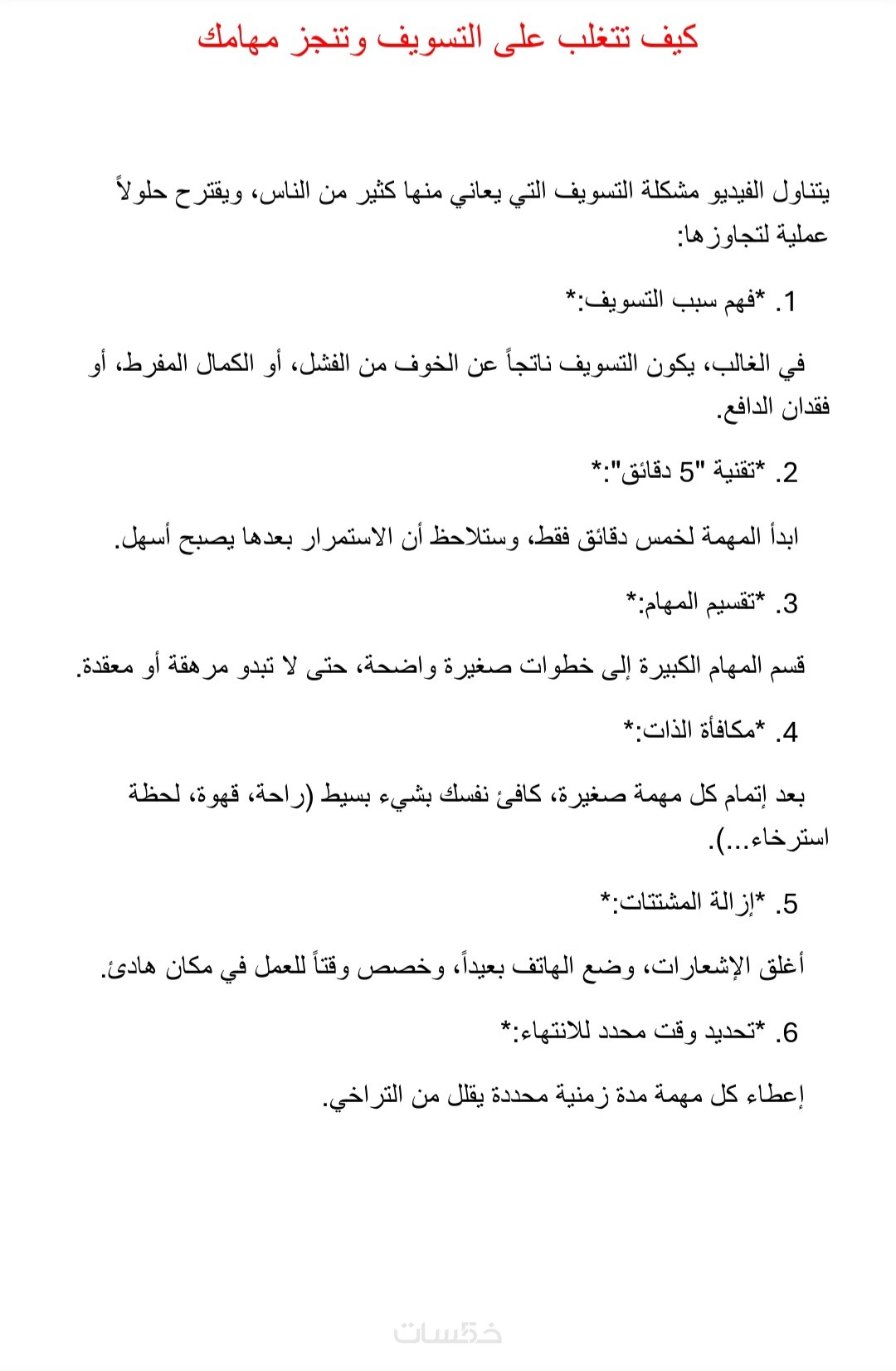 تلخيص محتوى الفيديو أو البودكاست باللغة العربية باحترافية