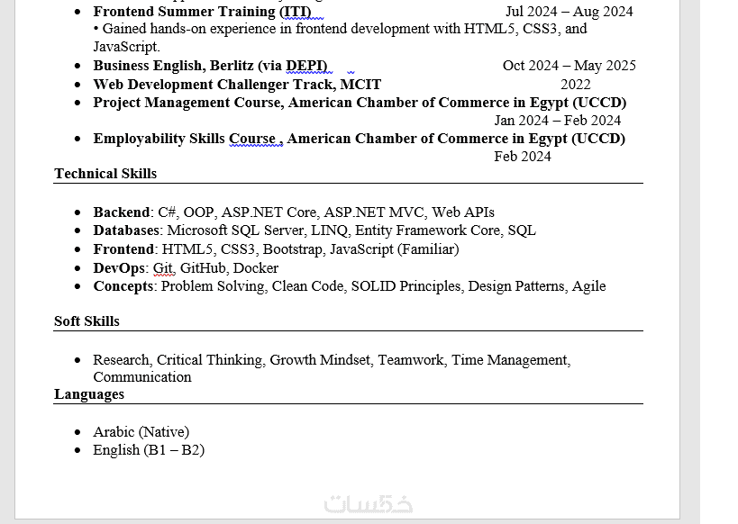انشاء وتصميم سيرة ذاتية باللغة الانجليزية والعربية بنظام ATS