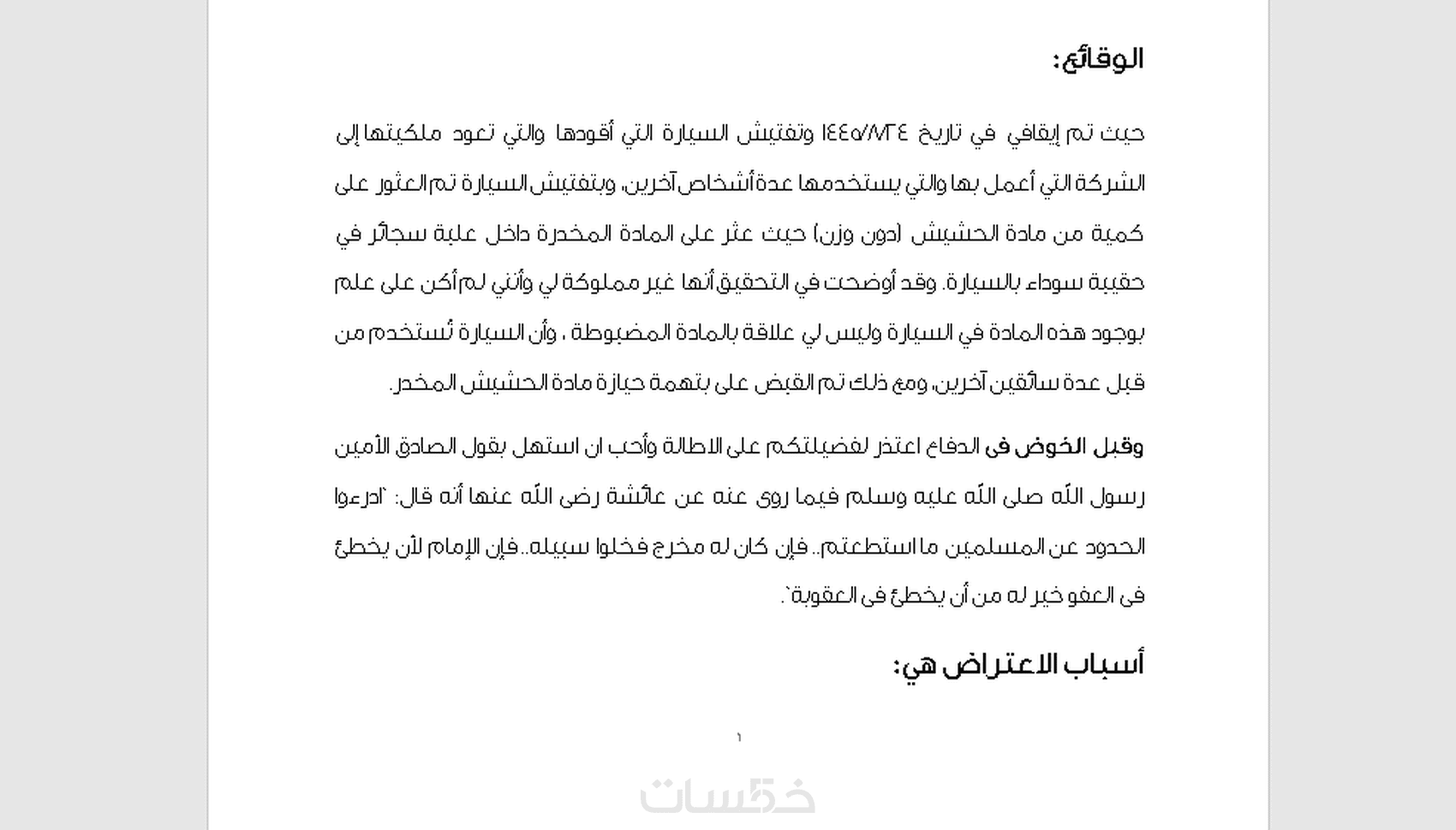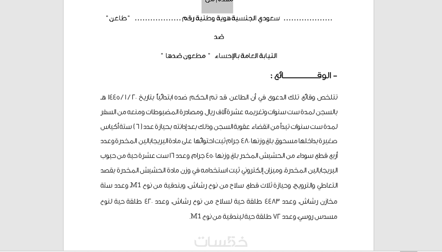 كتابة لوائح اعتراض واستئنافات ومذكرات وفقا للنظام السعودي