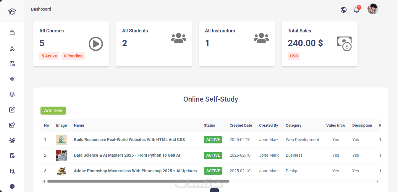 احصل على منصة تعليمية جاهزة مع لوحة التحكم