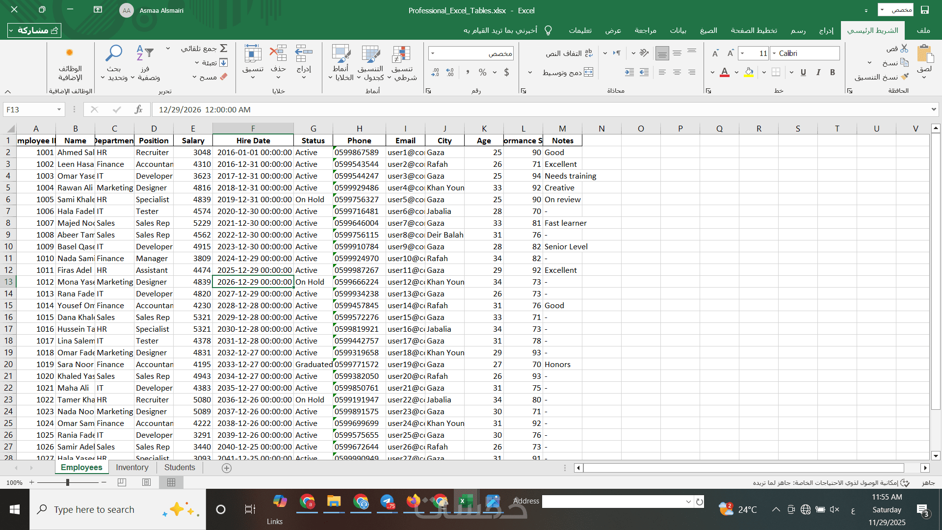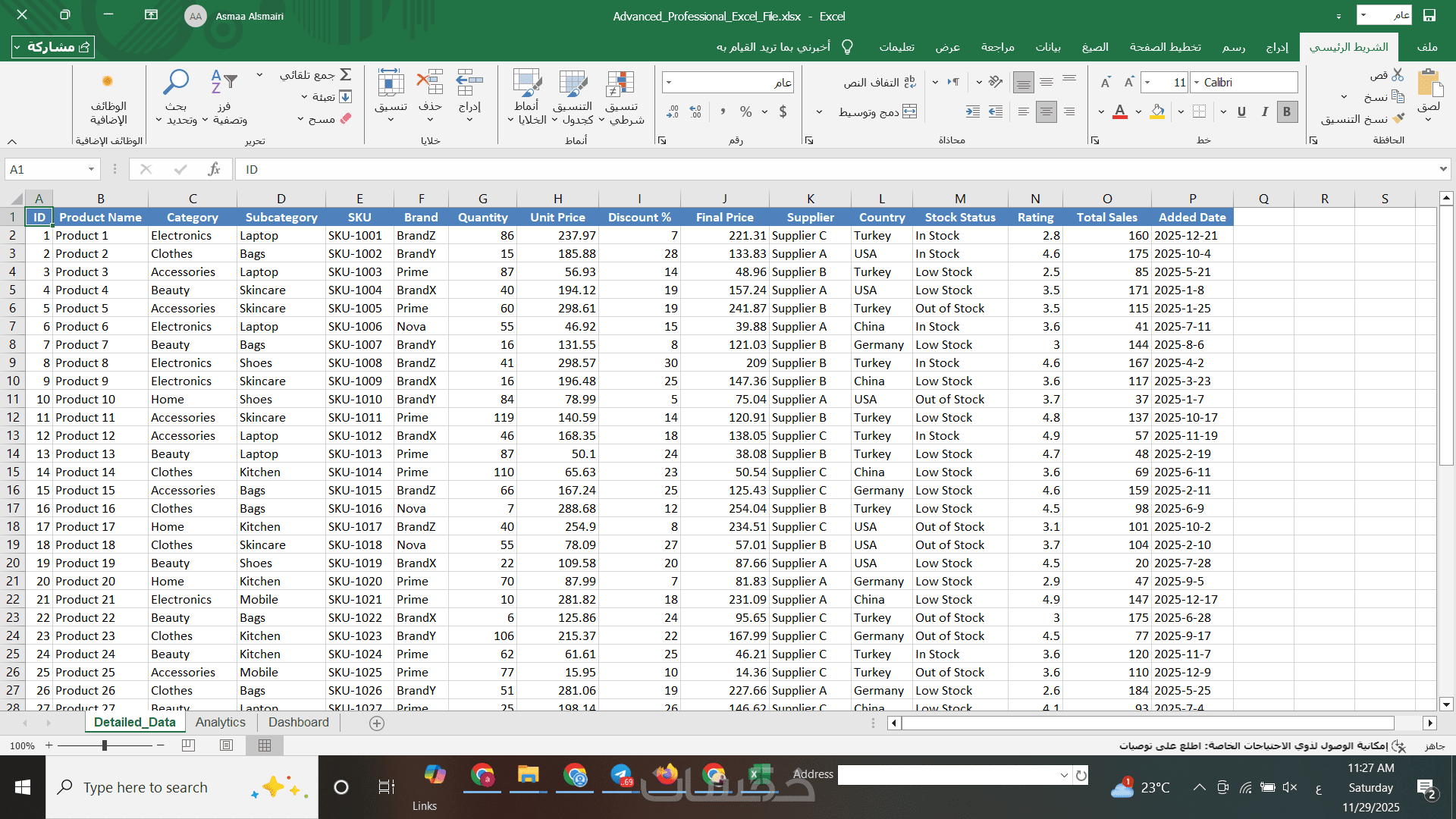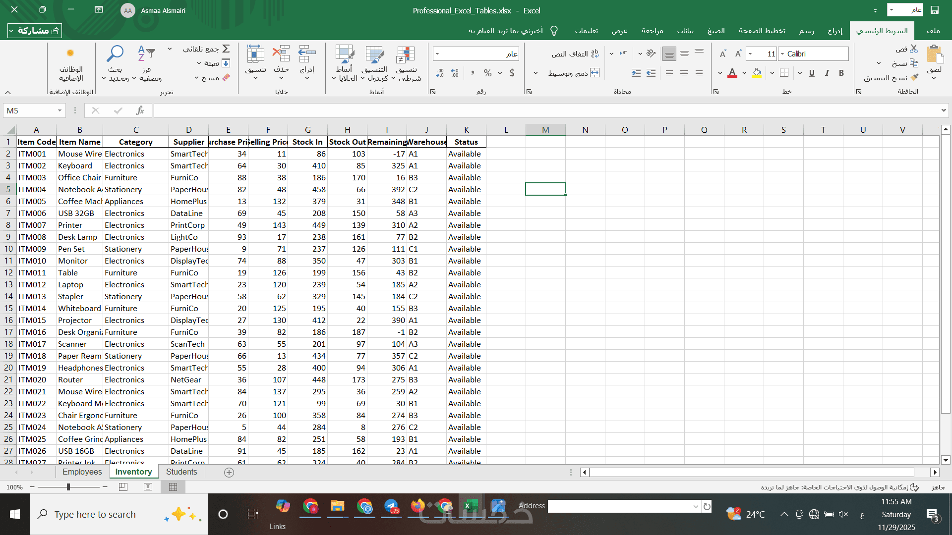 إدخال بيانات وتنظيم ملفات Excel بدقة وإحترافية