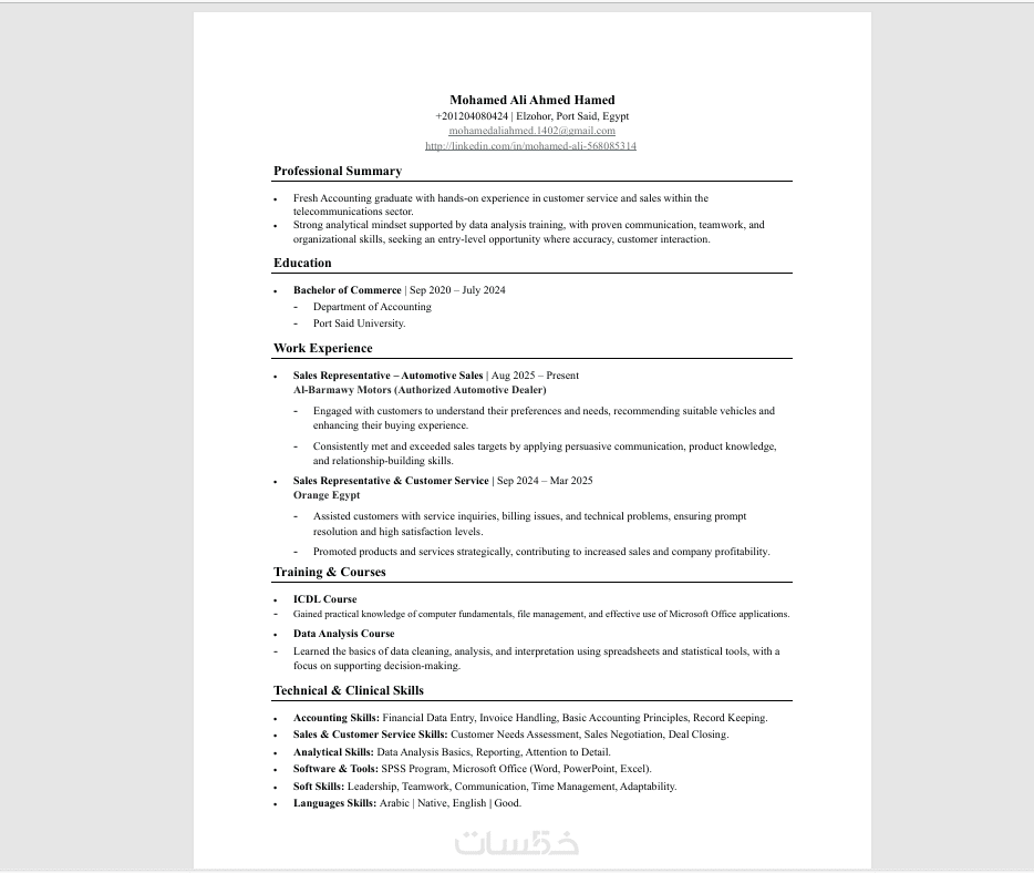 تصميم سيرة ذاتية CV احترافي عربي وإنجليزي ATS