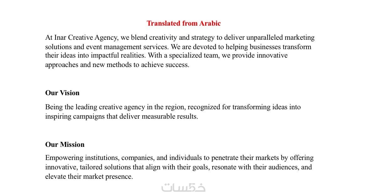 ترجمة يدوية دقيقة للمحتوى العربي والانجليزي