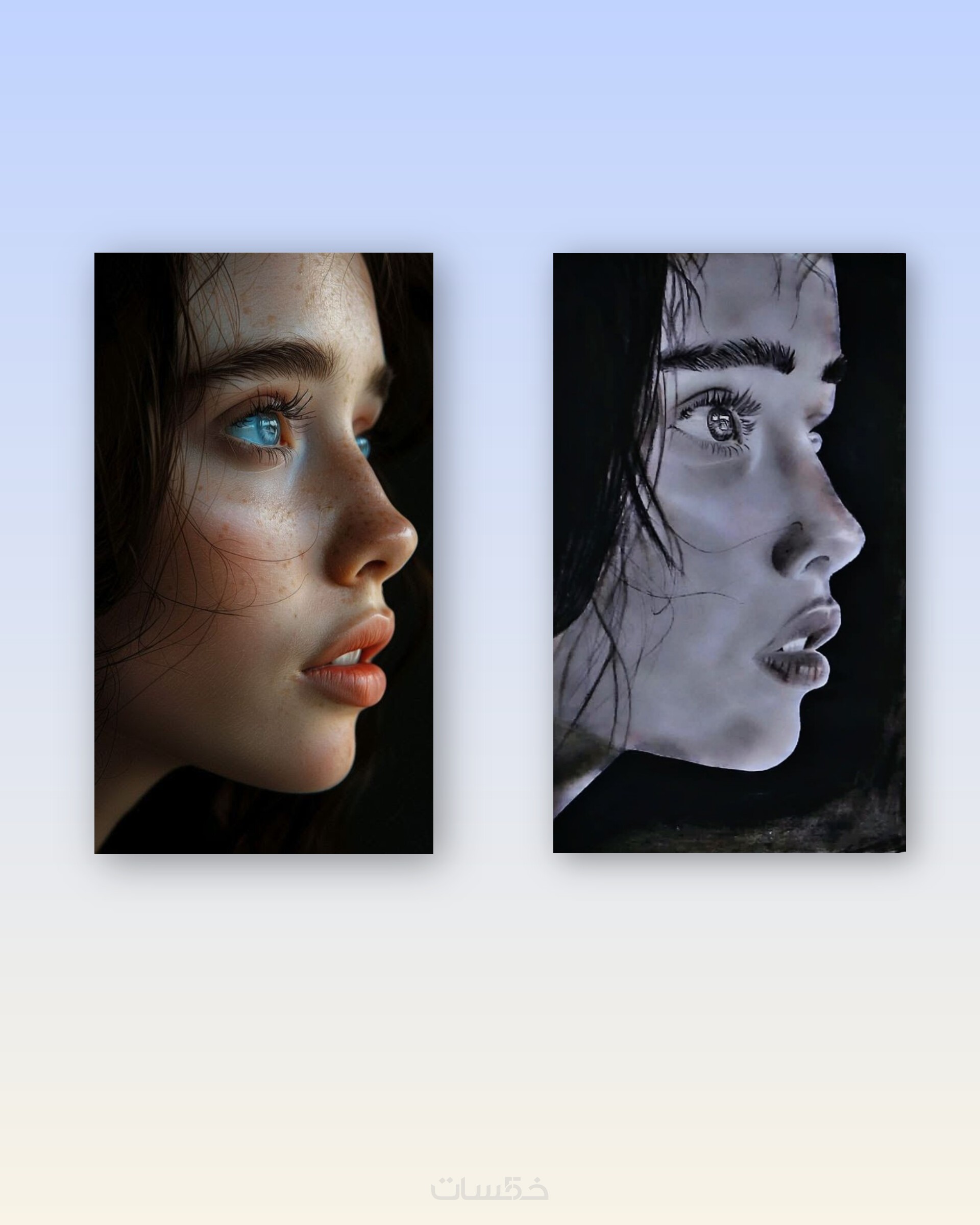رسم بورتريه ديجيتال ابيض واسود مطابق للرسم باليد