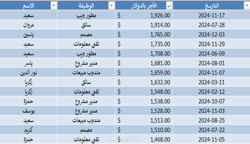 ادخال بيانات وتنظيمها وتنسيقها فى جدول باستخدام الاكسل