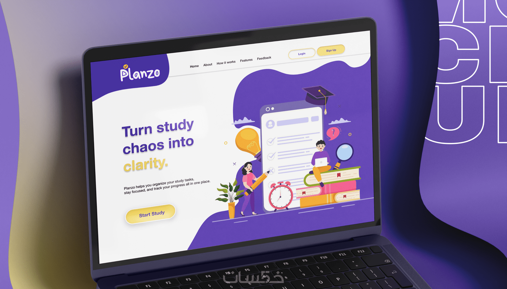 تصميم واجهة مستخدم UI لصفحة هبوط لتطبيق تنظيم المذاكرة