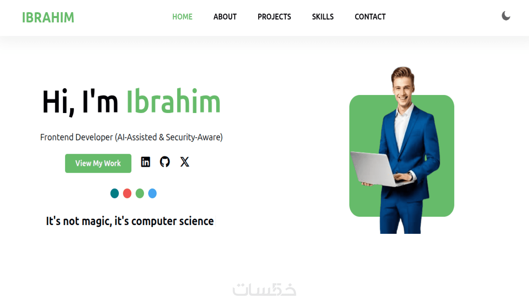 تصميم موقع شخصي / بورتفوليو رقمي متجاوب مع الوضع الداكن