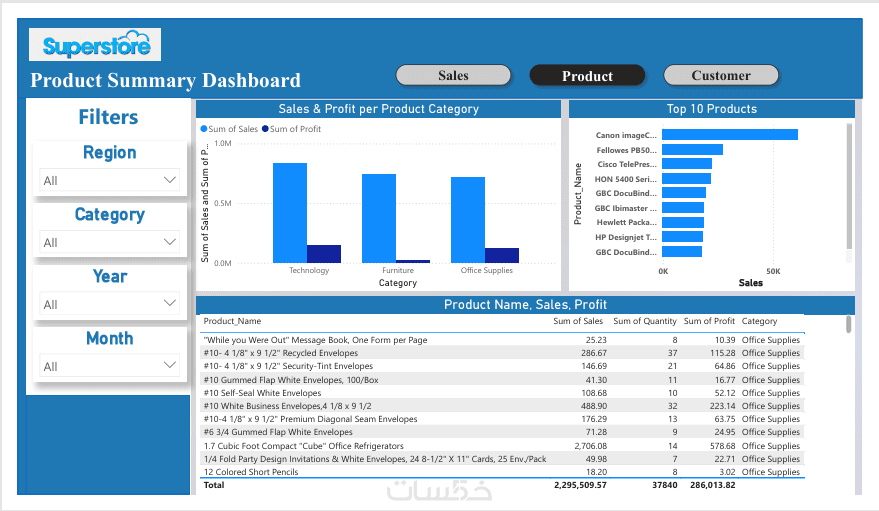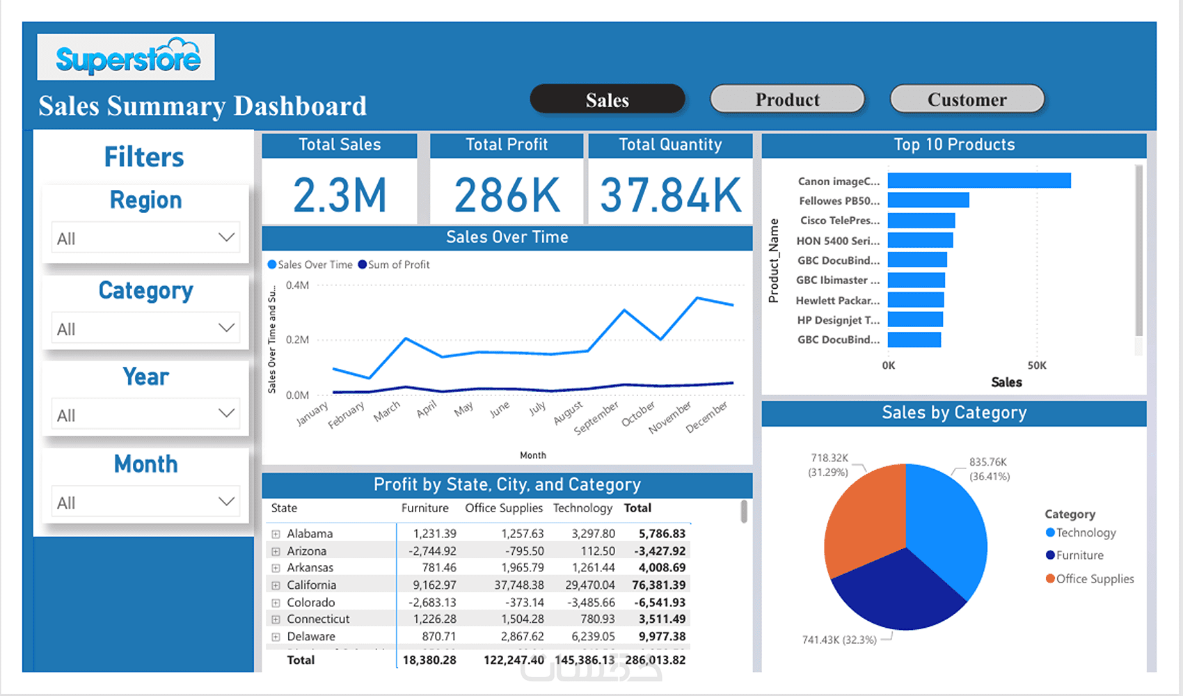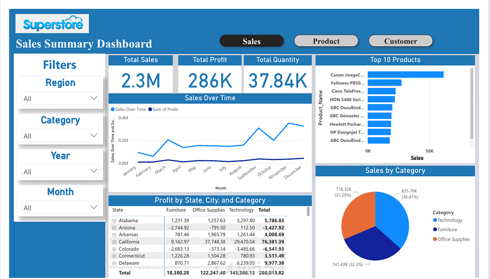 تحليل بيانات المبيعات وعرضها في لوحة تحكم تفاعلية باستخدام P