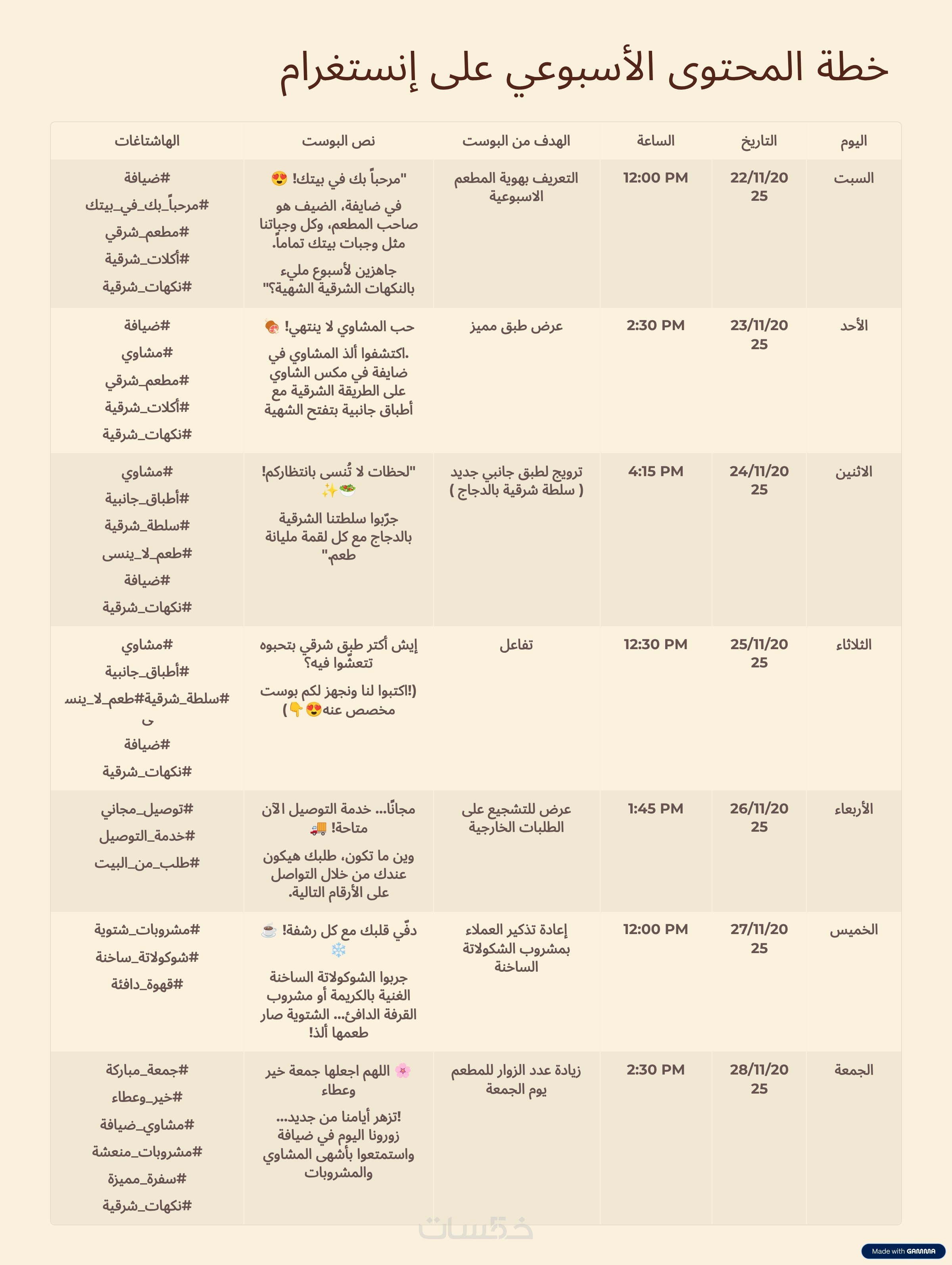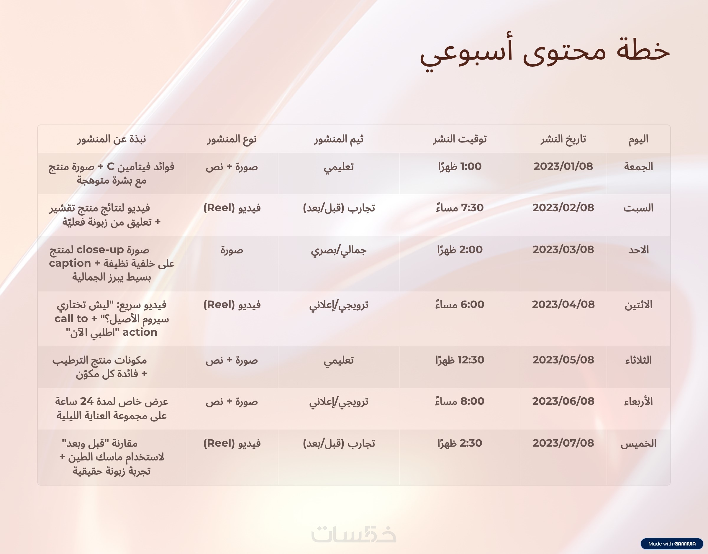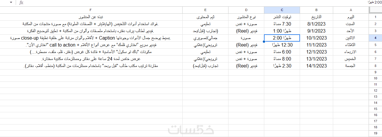 انشاء خطة محتوي اسبوعية - Weekly content calendar