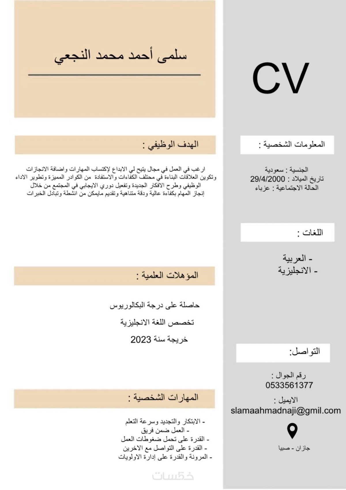 اعداد سيرة ذاتية بالعربي والانجليزي والفرنسي cv