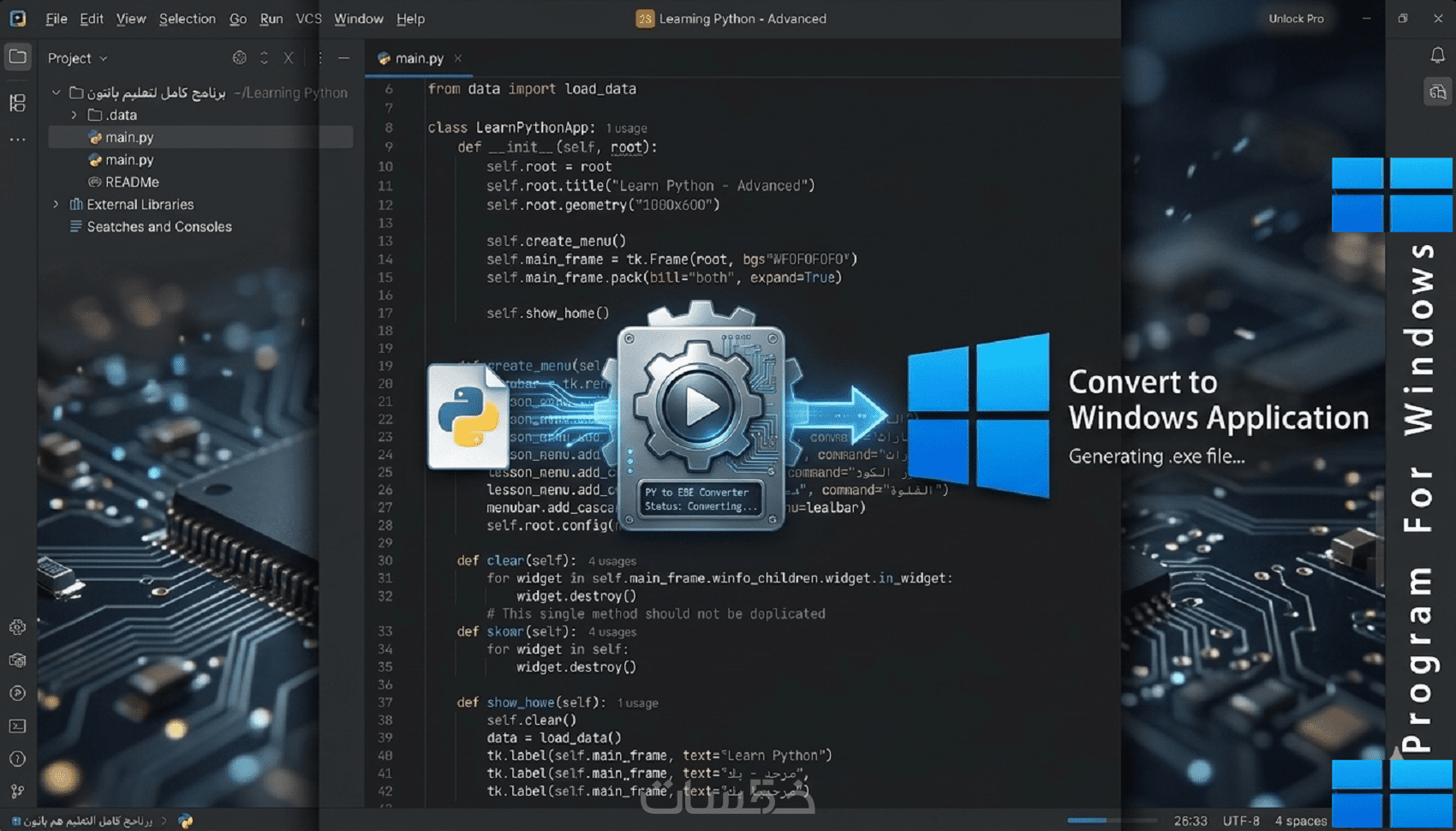 عمل تطبيق كامل لنظام ويندوز بلغه بايثون Python